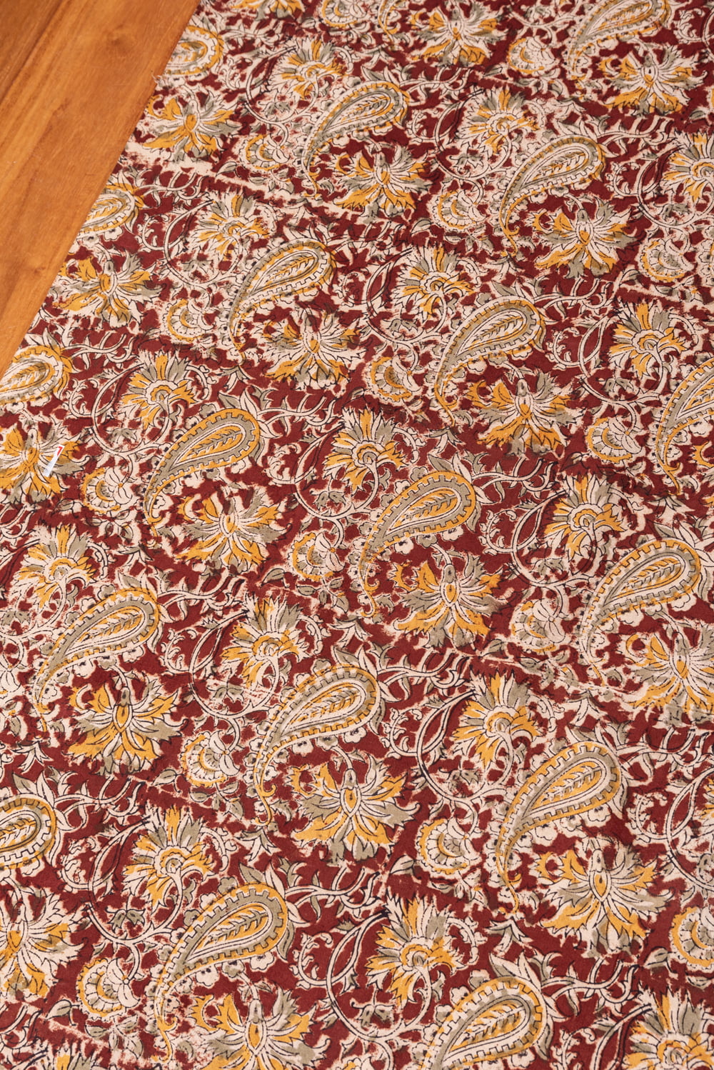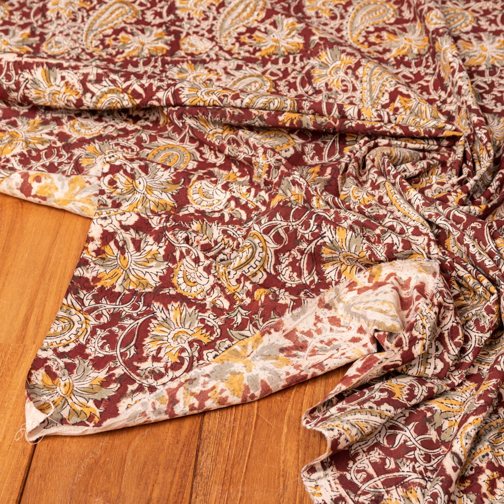 〔1m単位切り売り〕伝統息づく南インドから 昔ながらの木版染め更紗模様布 - 茶色系〔横幅:約116cm〕 x 3個