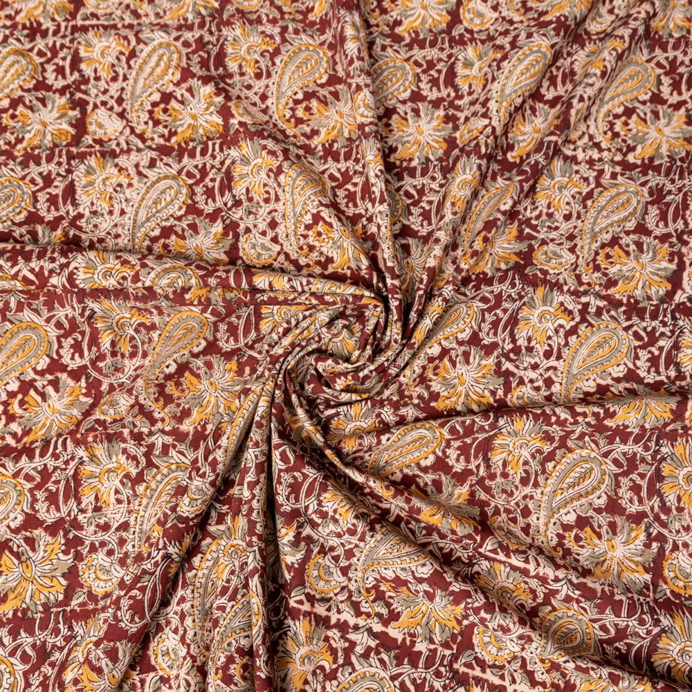 【3個セット】〔1m単位切り売り〕伝統息づく南インドから 昔ながらの木版染め更紗模様布 - 茶色系〔横幅:約116cm〕の同一カテゴリ商品