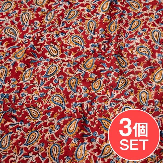 〔1m単位切り売り〕伝統息づく南インドから 昔ながらの木版染め更紗模様布〔約106cm〕 - レッド x 3個