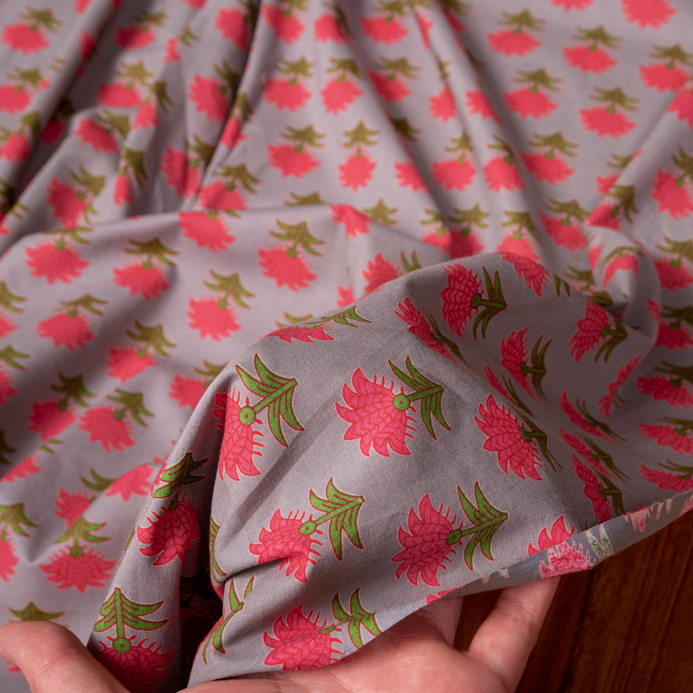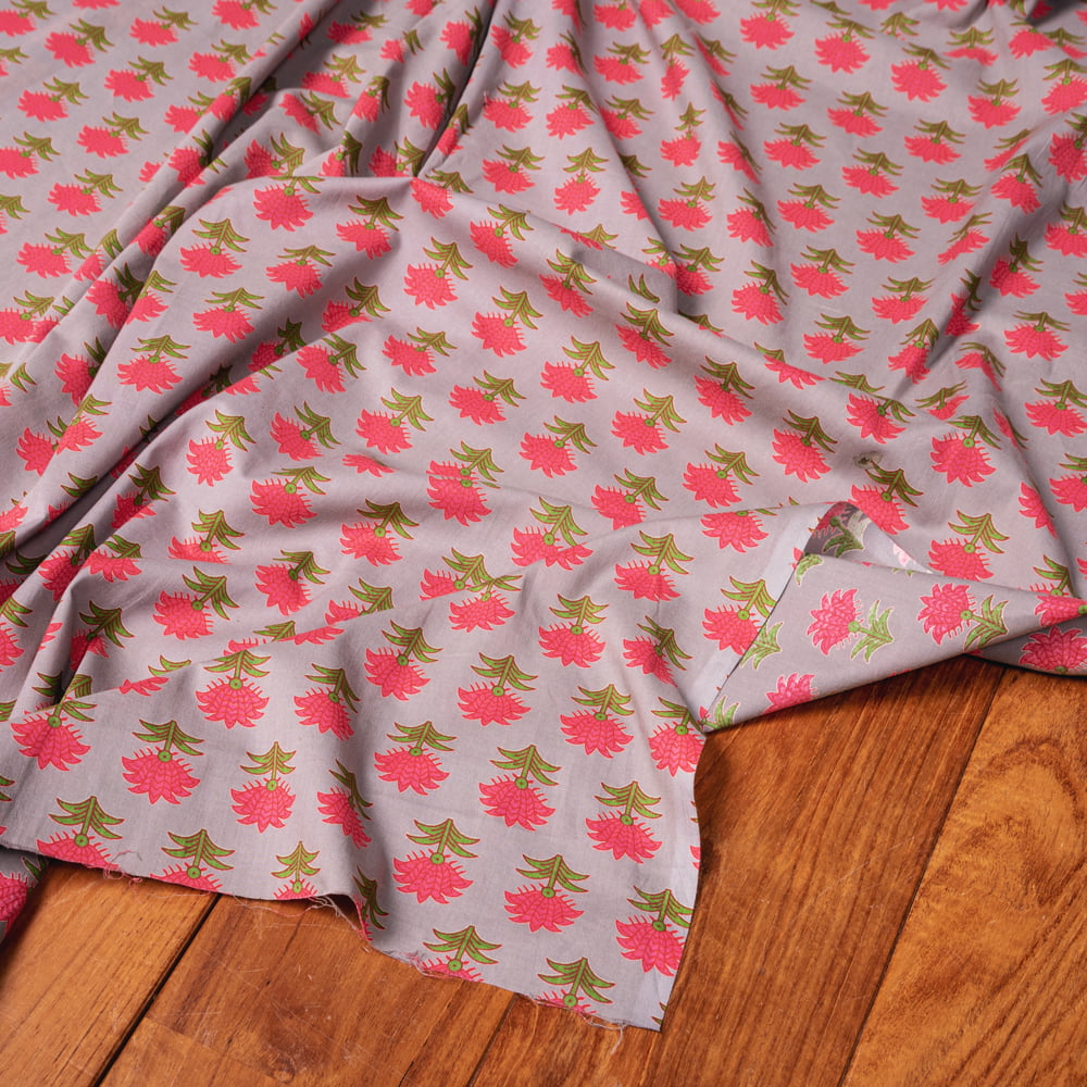 【3個セット】〔1m単位切り売り〕南インドの小花柄布〔約106cm〕 - グレー 通販店