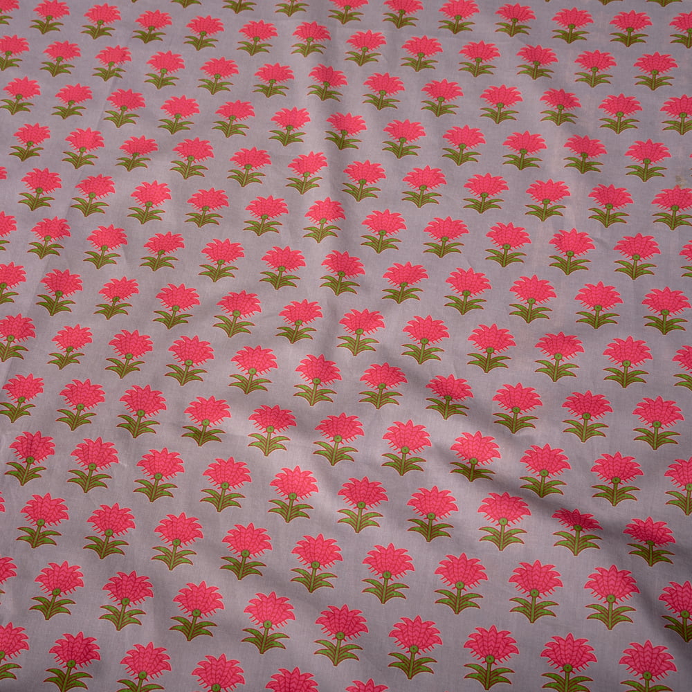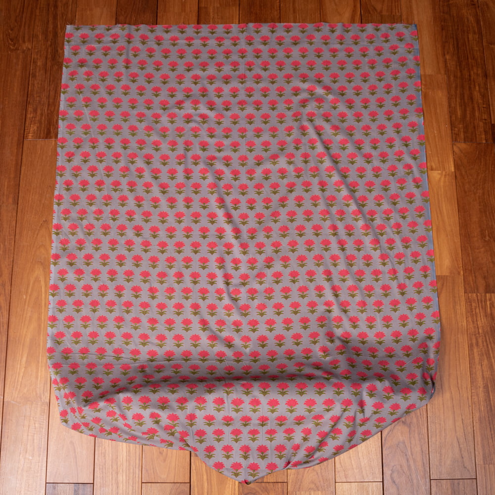 〔1m単位切り売り〕南インドの小花柄布〔約106cm〕 - グレー x 3個