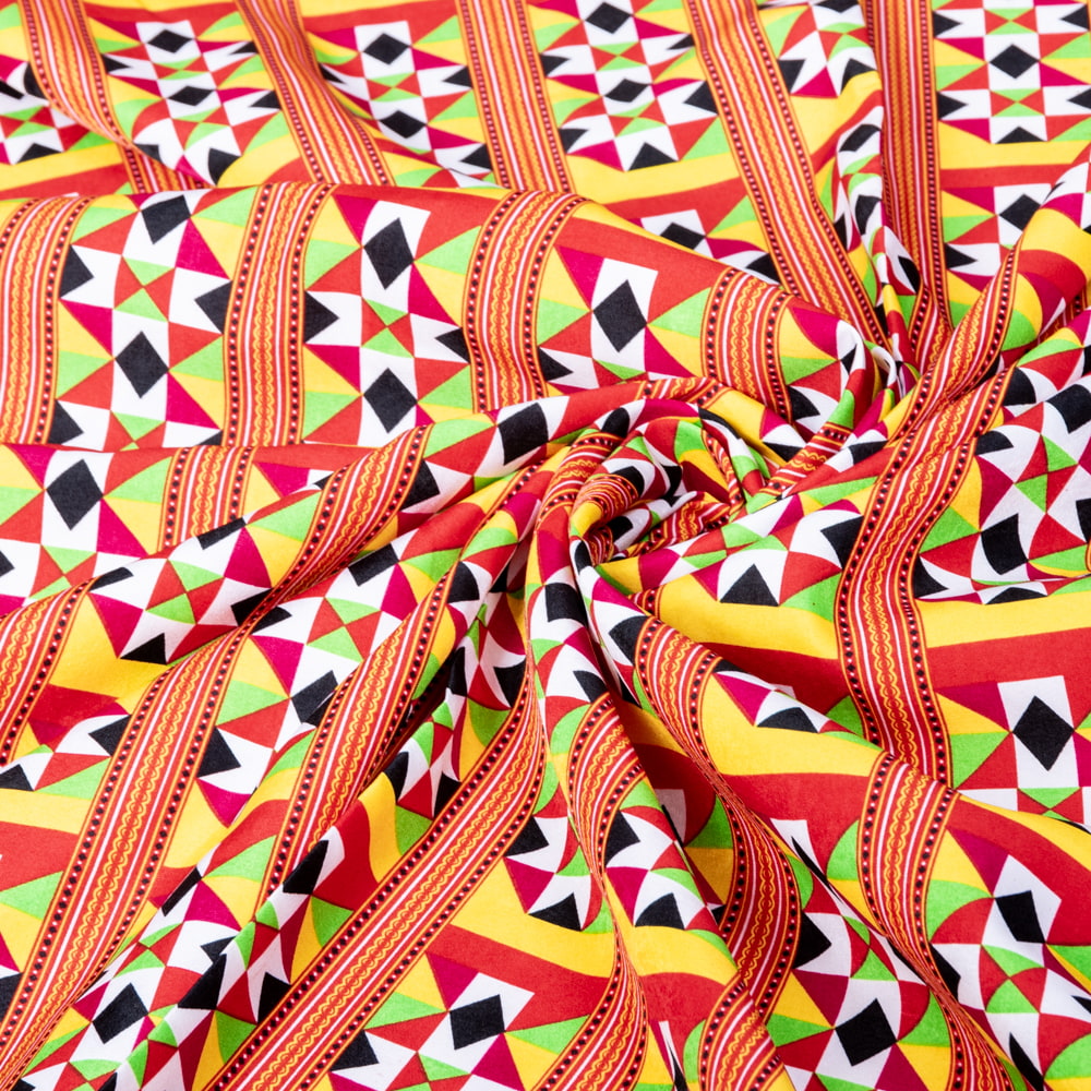 〔1m単位切り売り〕民族系ファブリック 生地 幾何学模様 アフリカンファブリック フォークロア 民俗的 トライバル〔約162.5cm〕 x 3個