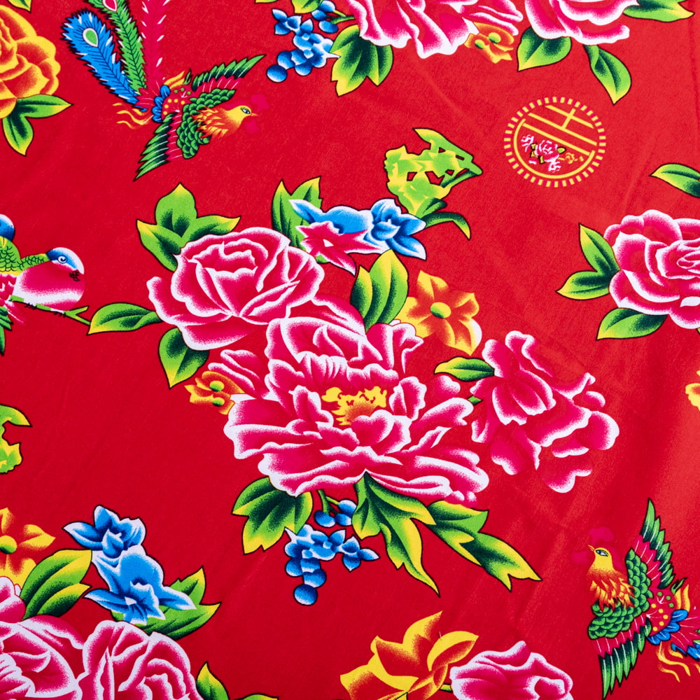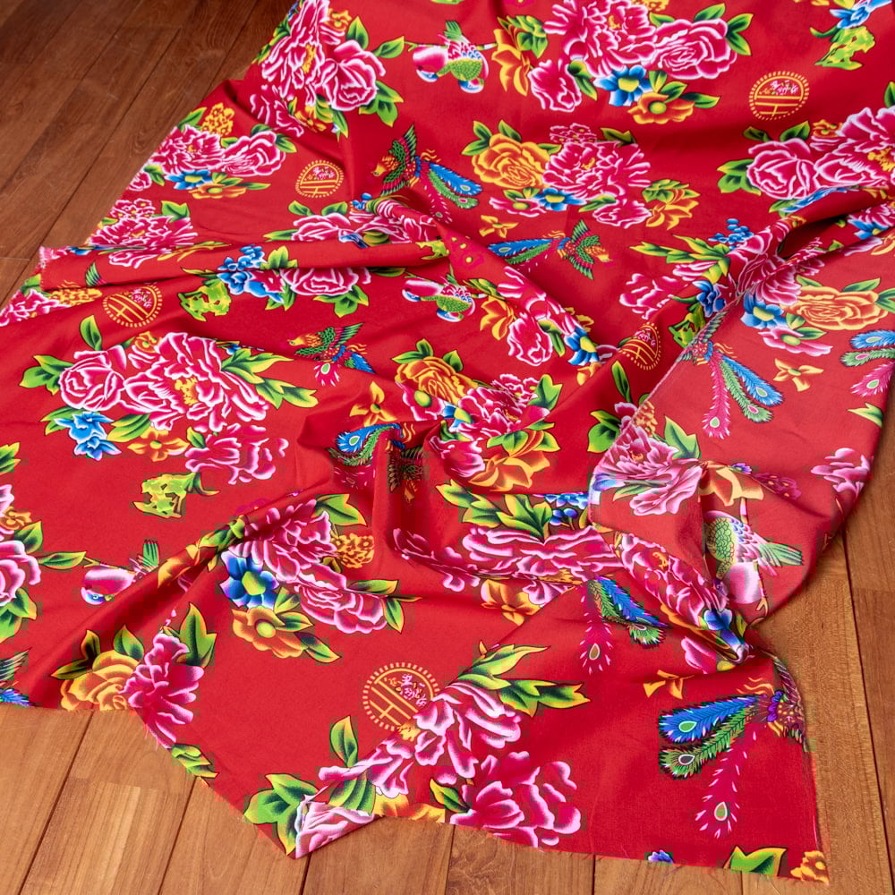 【5個セット】〔1m単位切り売り〕アジアのレトロ花柄ファブリック 生地 東北大花布 鳳凰牡丹 花鳥画 ヴィンテージ風 昭和レトロ〔約160cm〕 - レッド 通販店