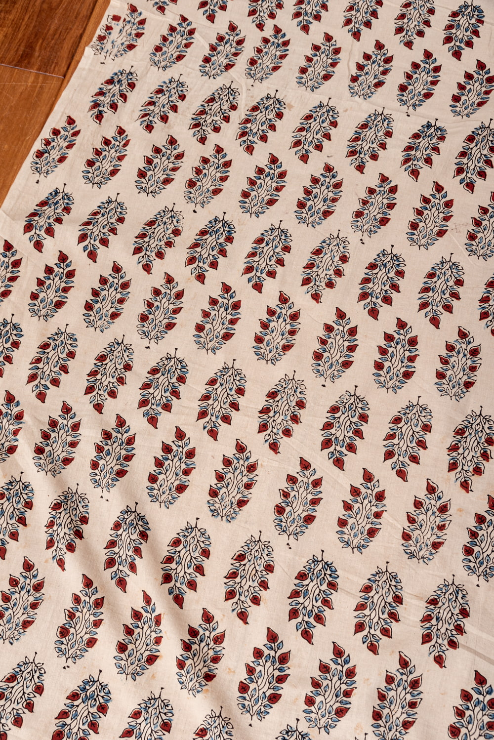 布には、ハンドメイドのウッドブロックプリントにしか出せない、独特のムラがありとても雰囲気があります。