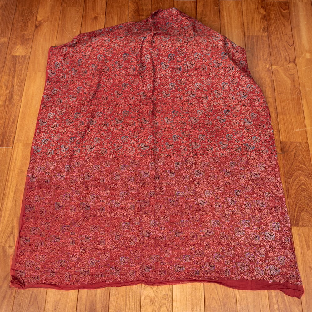 ウッドブロック(木版)を用いて一つ一つ模様を染めこんだ優雅で贅沢な仕上がりの布です。色が変わるたびに版を交換するため非常に時間のかかる丁寧な手仕事の賜物といえます。インドは美しい布の宝庫ですが、その中でも特に素敵な一枚に仕上がっています。