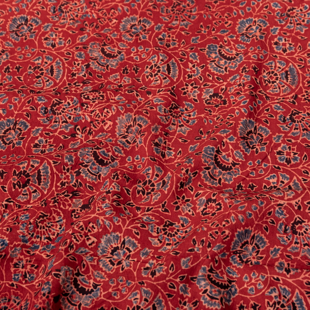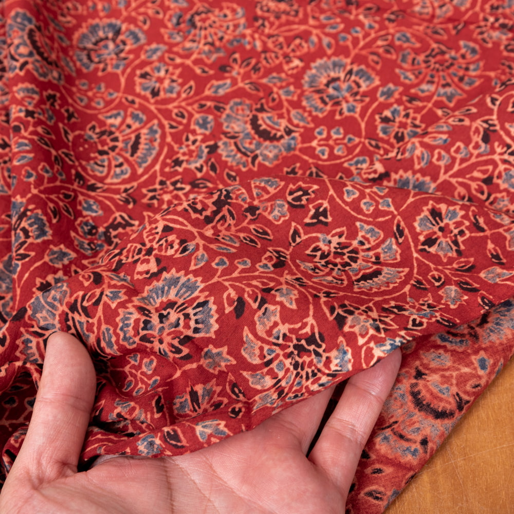 〔1m単位切り売り〕アジュラックプール村からやってきた 昔ながらの木版染め更紗模様布〔約112cm〕 - レッド系 x 5個