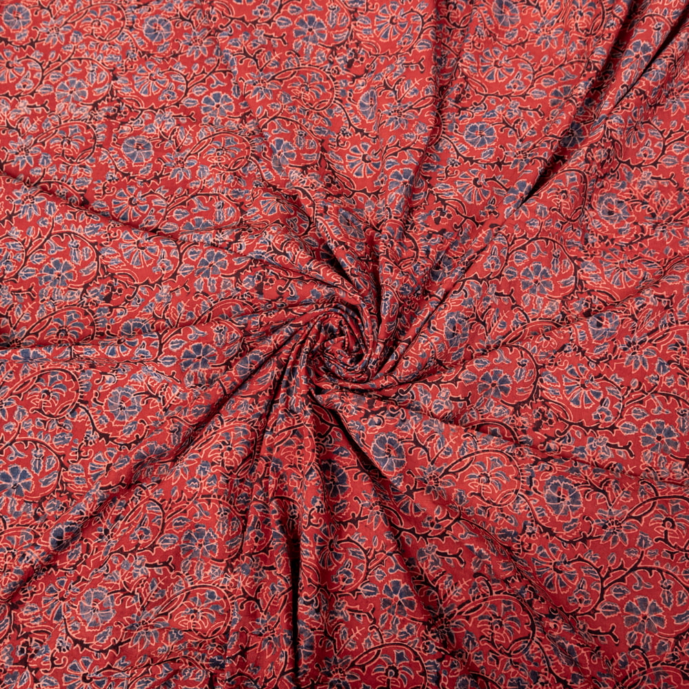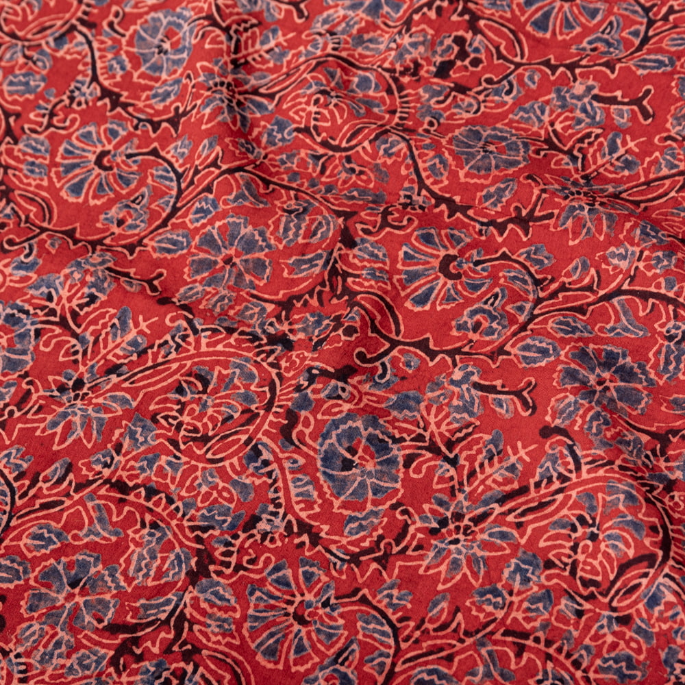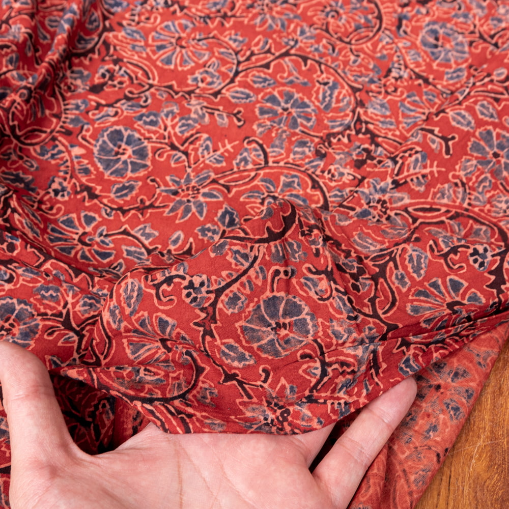 〔1m単位切り売り〕アジュラックプール村からやってきた 昔ながらの木版染め更紗模様布〔約113cm〕 - レッド系 x 5個