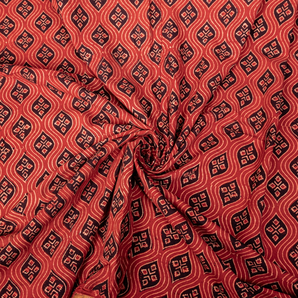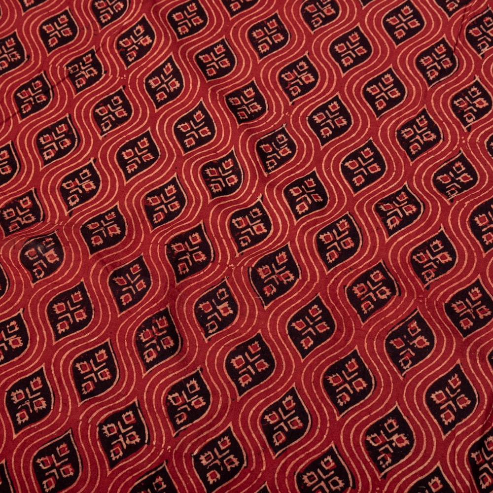 〔1m単位切り売り〕アジュラックプール村からやってきた 昔ながらの木版染め伝統模様布〔幅約112cm〕 - 赤系 x 5個