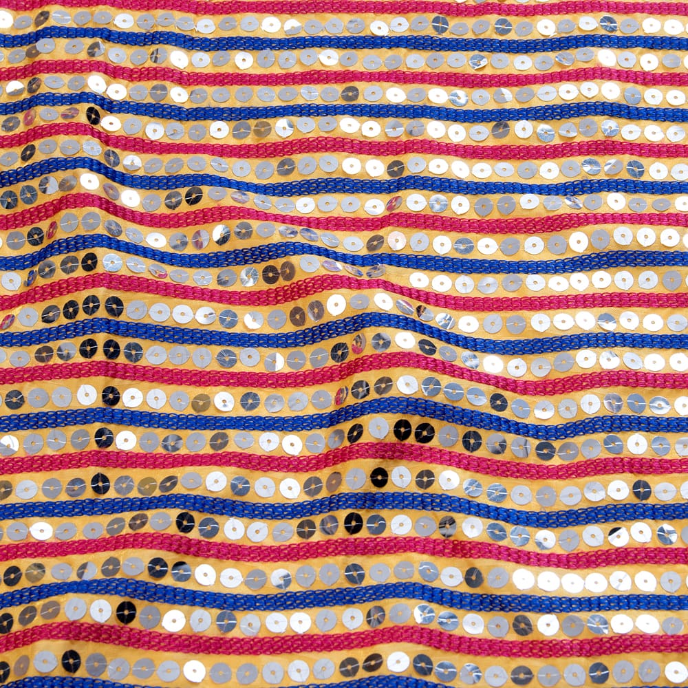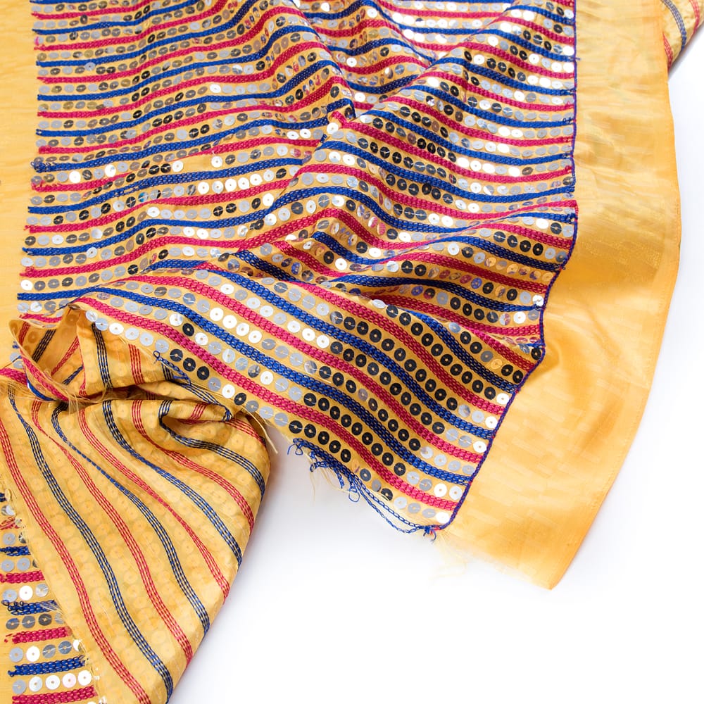 〔1m単位切り売り〕インドのスパンコールクロス布〔106cm〕 - イエロー x 5個