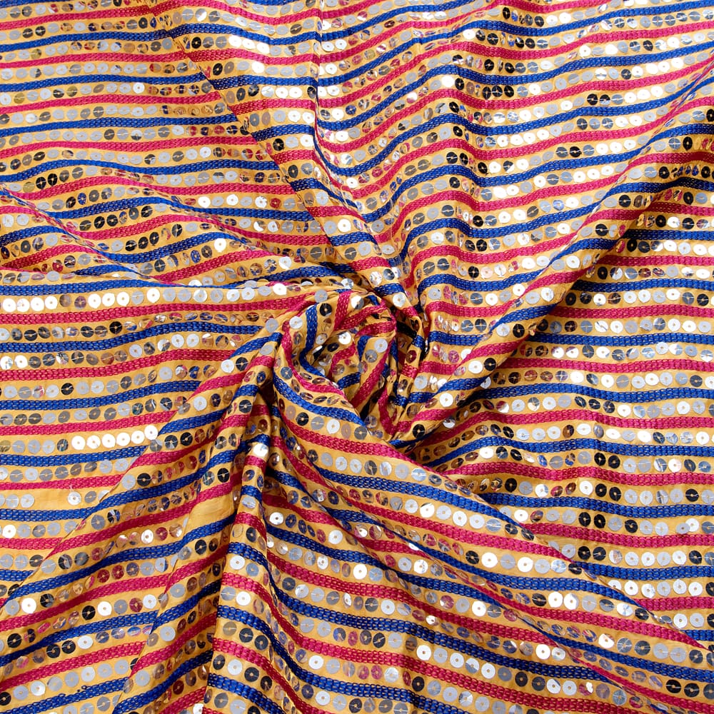 【5個セット】〔1m切単位り売り〕インドのスパンコールクロス布〔106cm〕 - イエロー