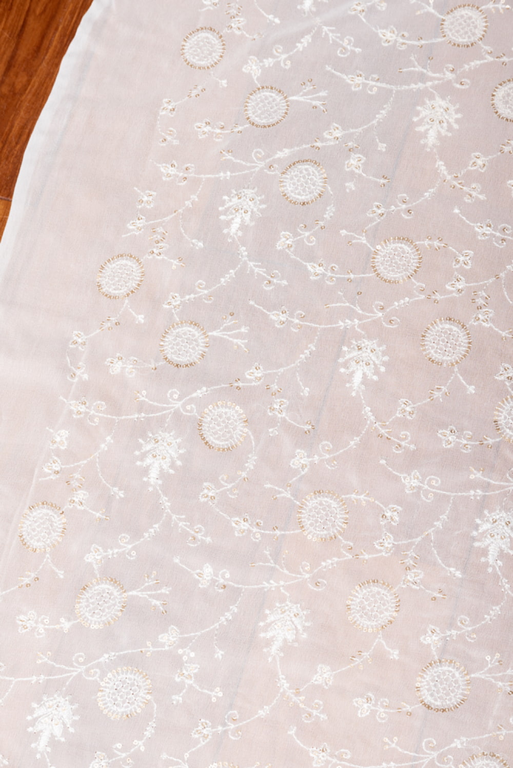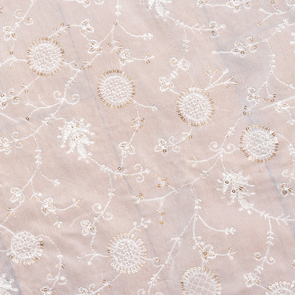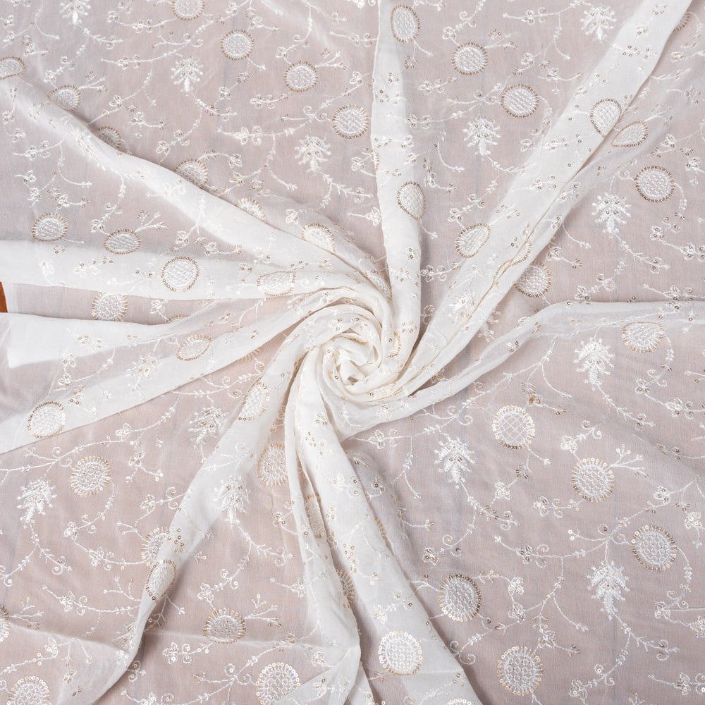〔1m単位切り売り〕インドのスパンコール刺繍付き シフォン生地布〔約106cm〕ホワイト系 x 5個