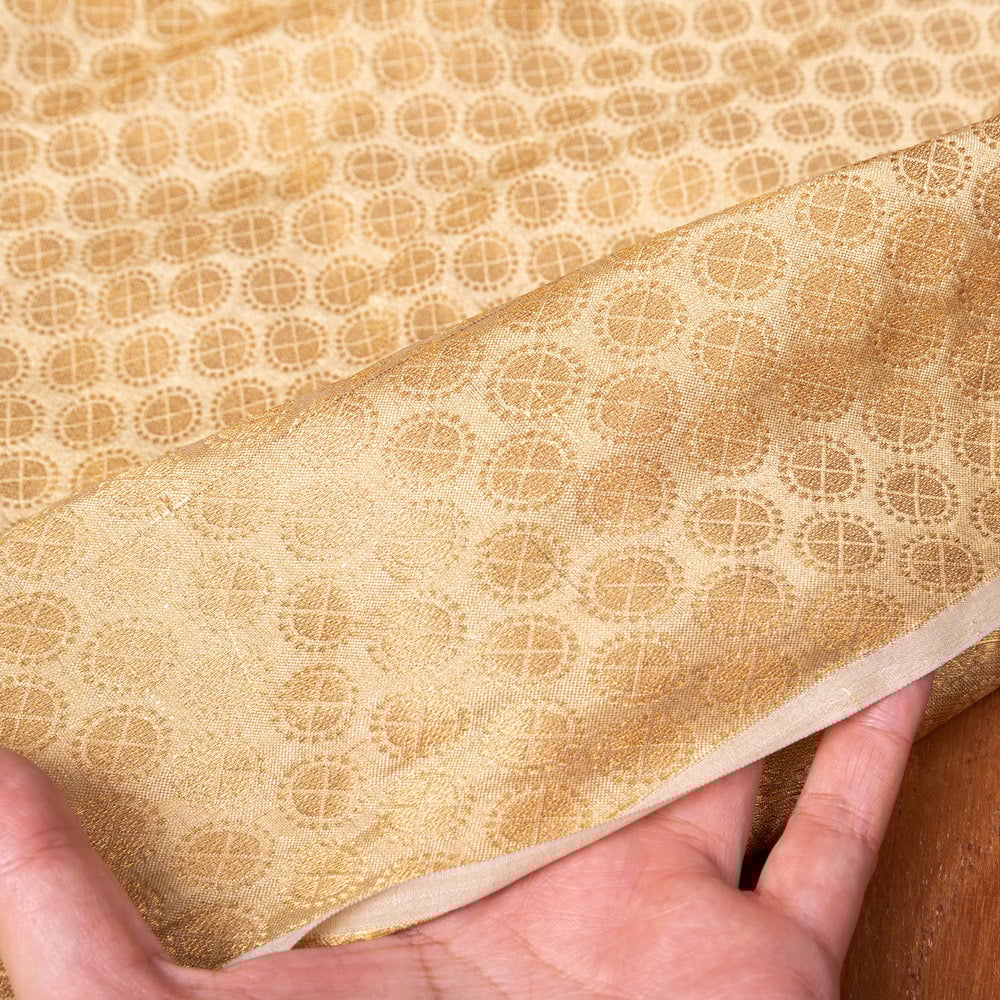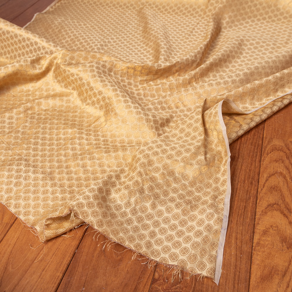【5個セット】〔1m切単位り売り〕インドの伝統模様布 光沢感のあるゴールド系生地〔幅約110cm〕 通販店