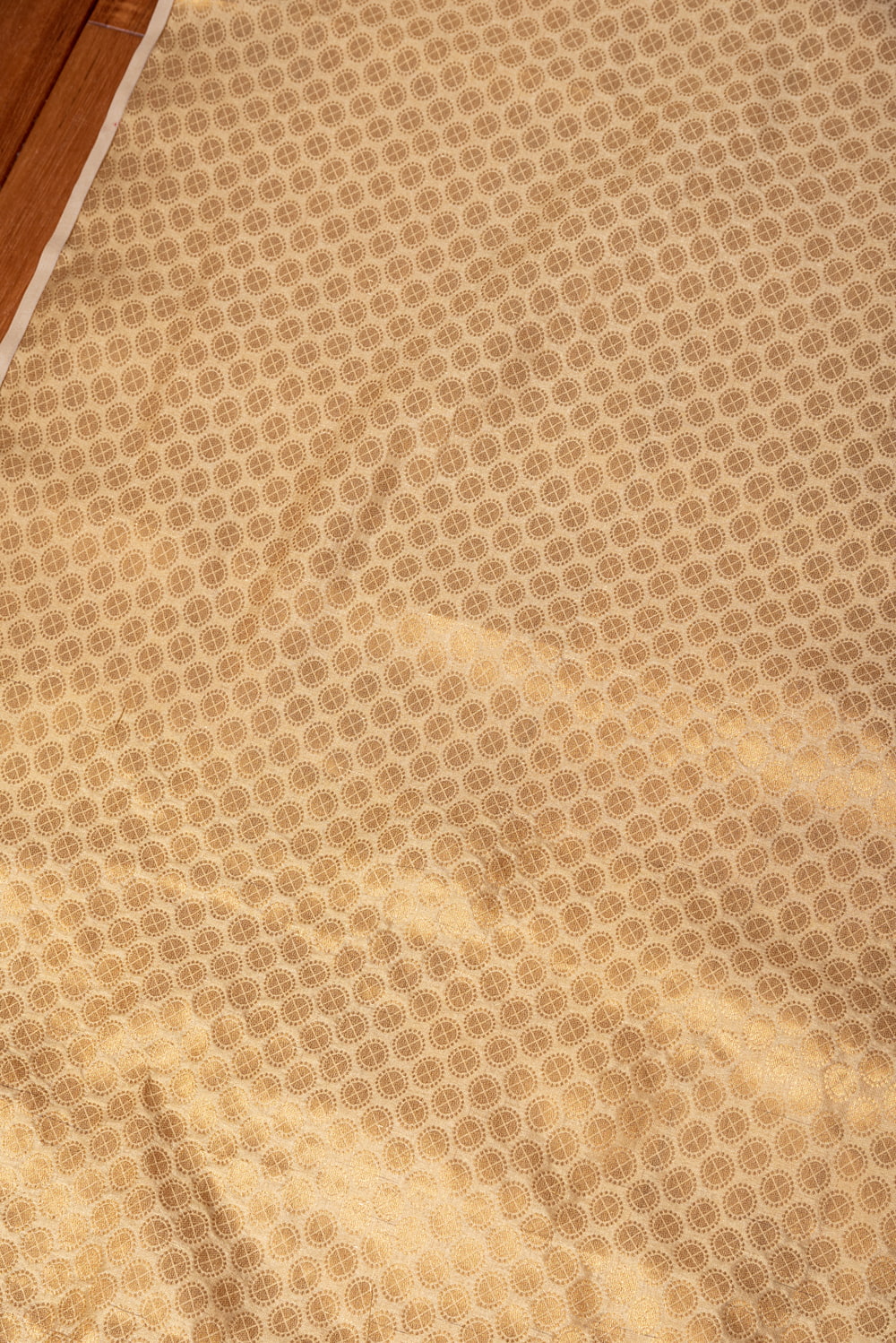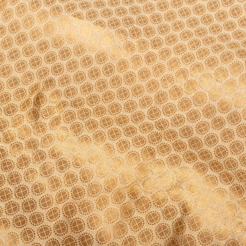 〔1m単位切り売り〕インドの伝統模様布 光沢感のあるゴールド系生地〔幅約110cm〕 x 5個