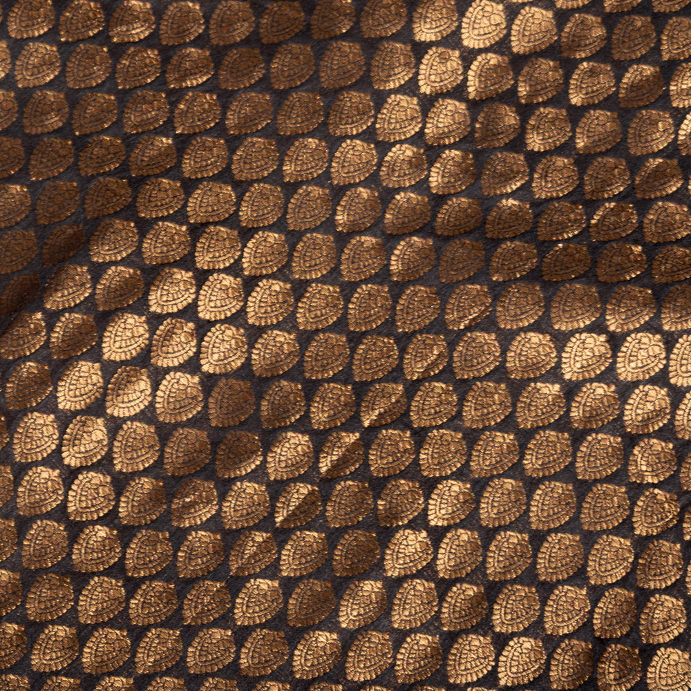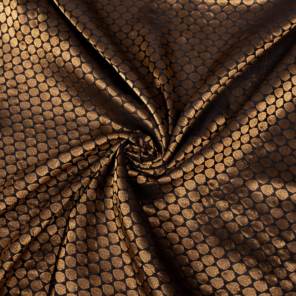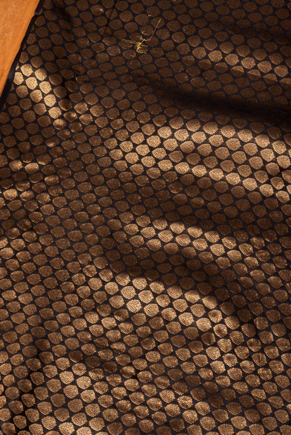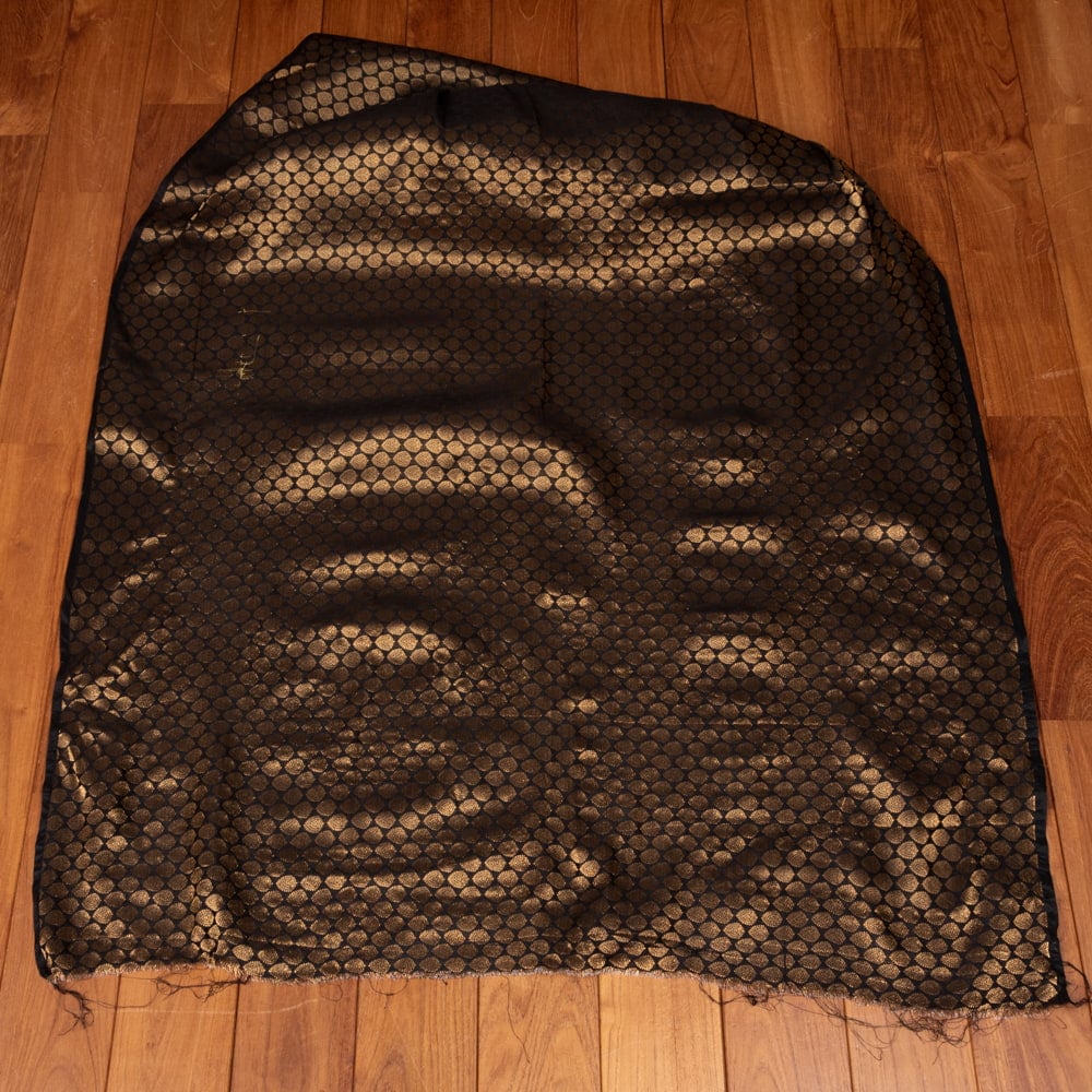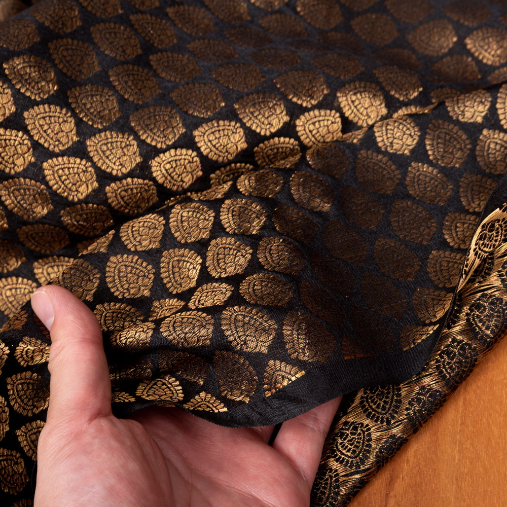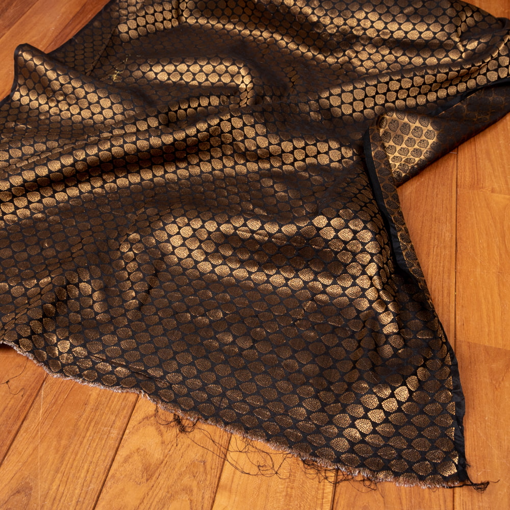 〔1m単位切り売り〕インドの伝統模様布 光沢感のあるブロケード生地 金糸〔約107cm〕ブラック系 x 5個