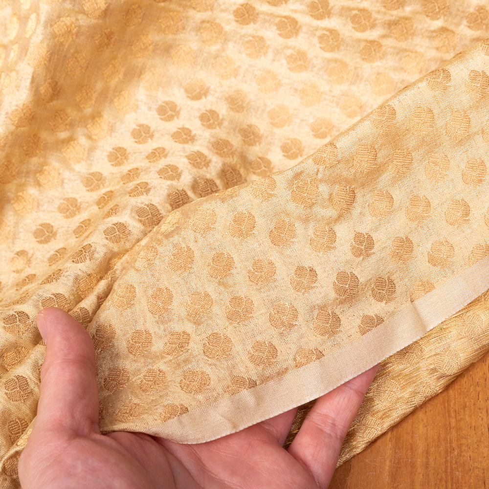 〔1m単位切り売り〕インドの伝統模様布 光沢感のあるブロケード生地 金糸〔約109cm〕ゴールド系 x 5個