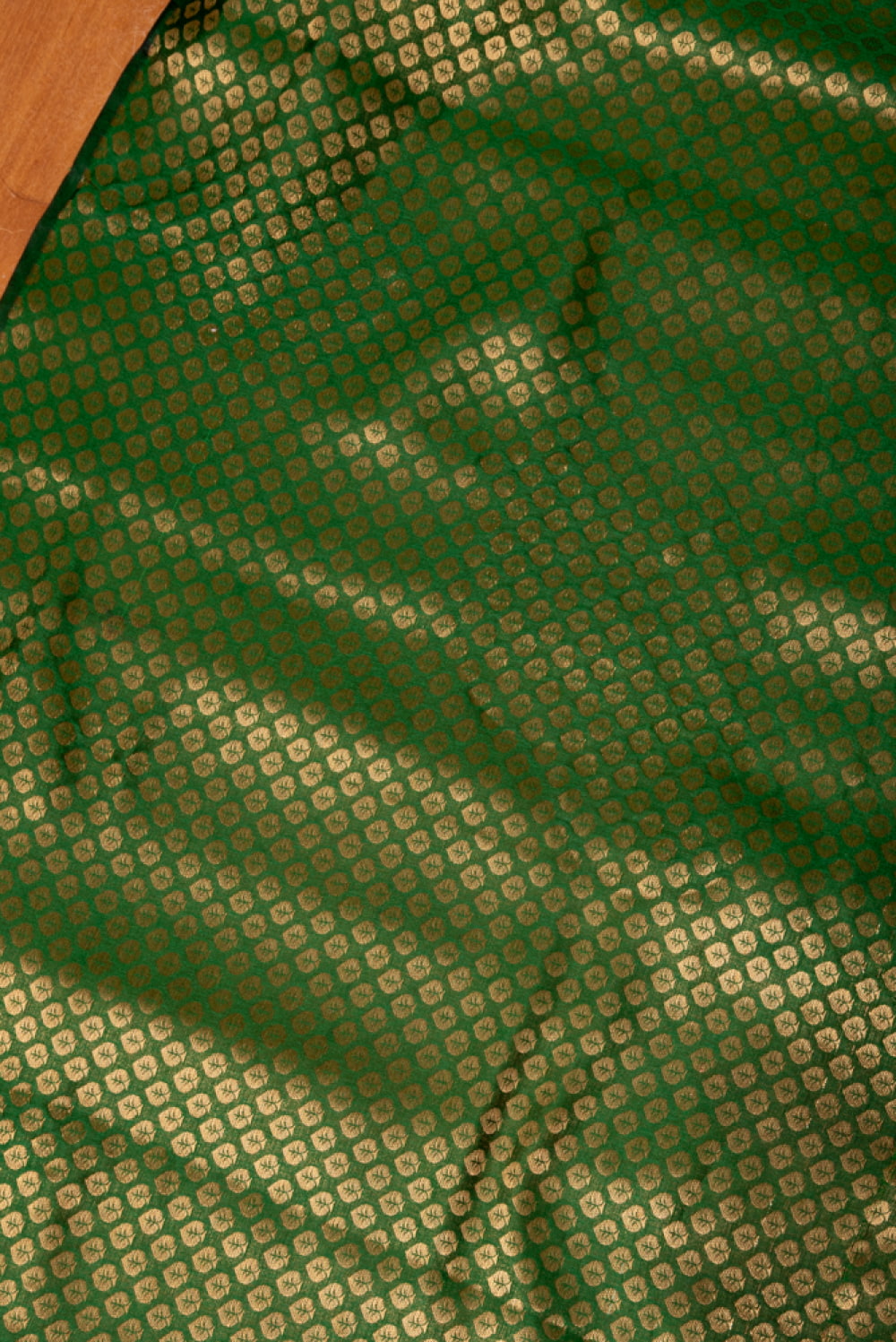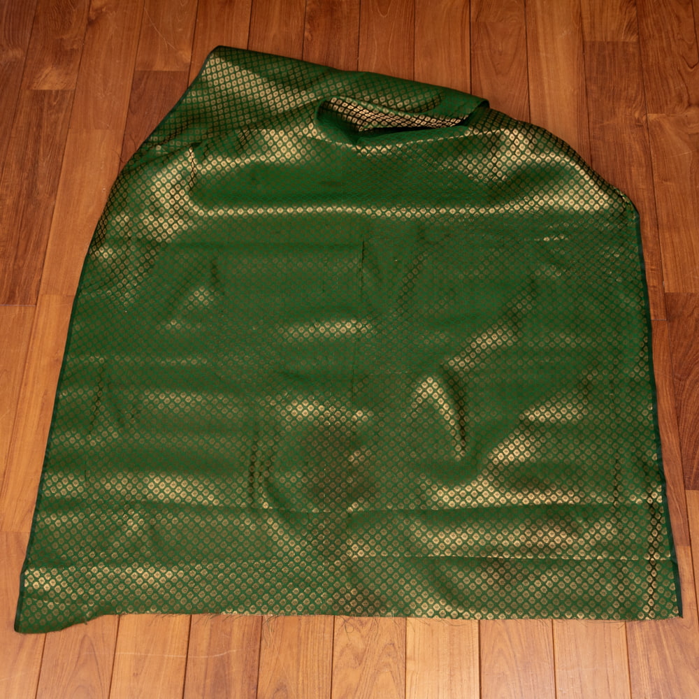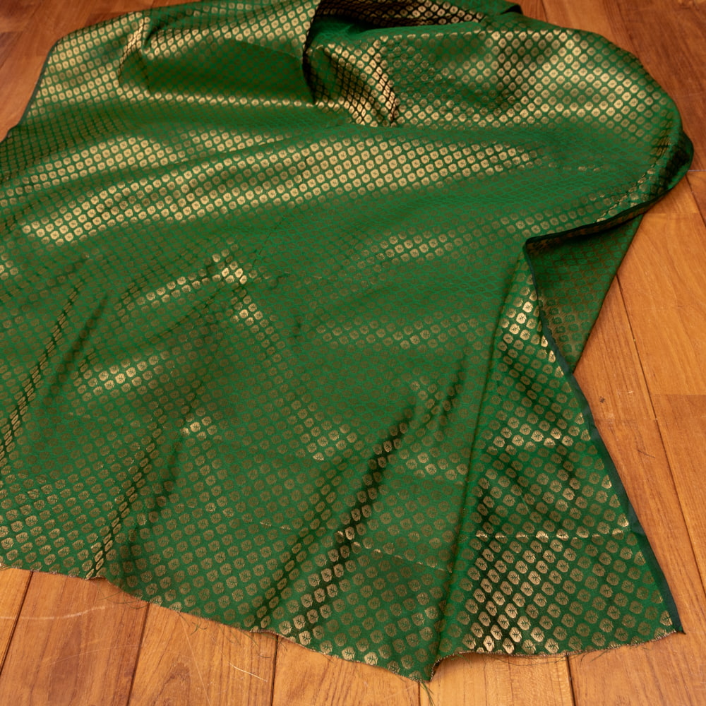 〔1m単位切り売り〕インドの伝統模様布 光沢感のあるブロケード生地 金糸〔約111cm〕グリーン系 x 5個
