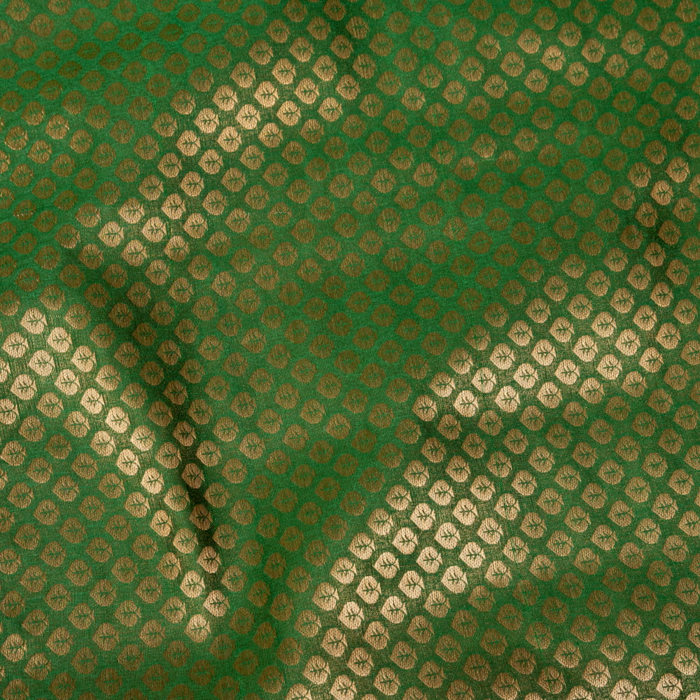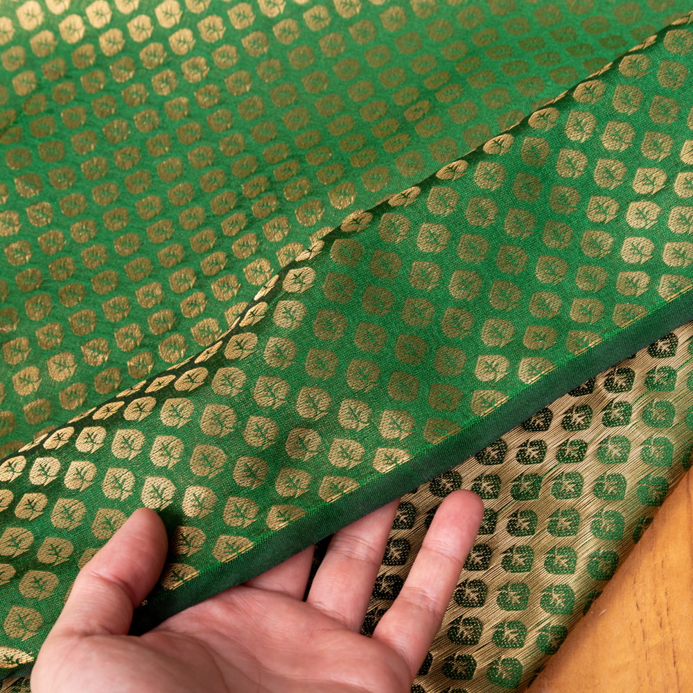 【5個セット】〔1m切単位り売り〕インドの伝統模様布 光沢感のあるブロケード生地 金糸〔約111cm〕グリーン系