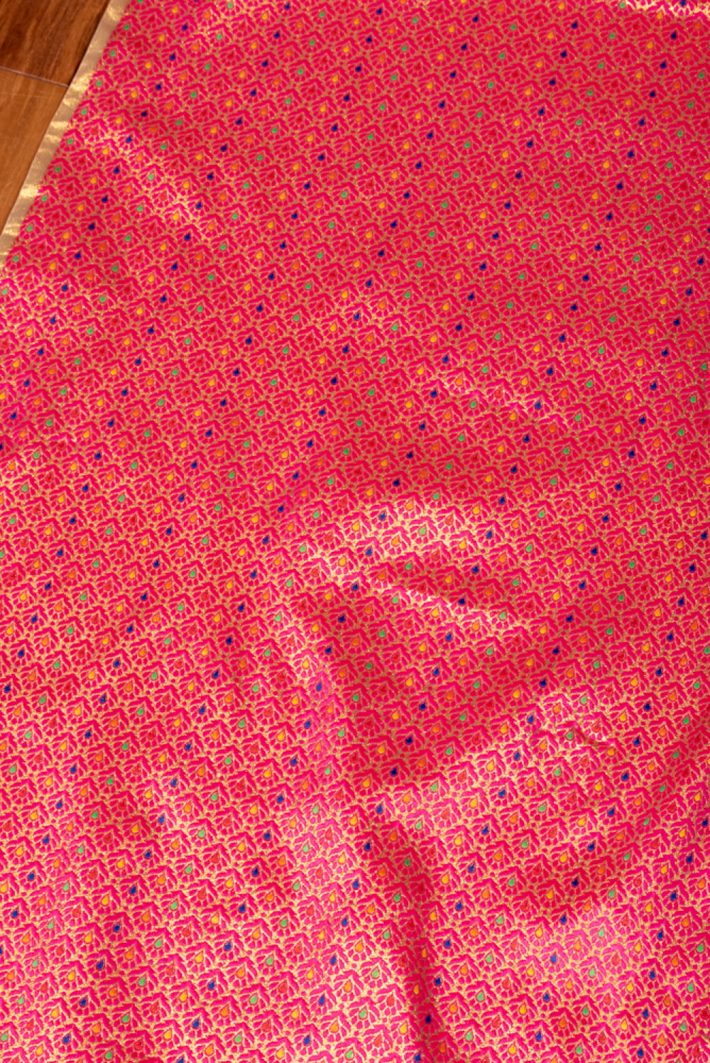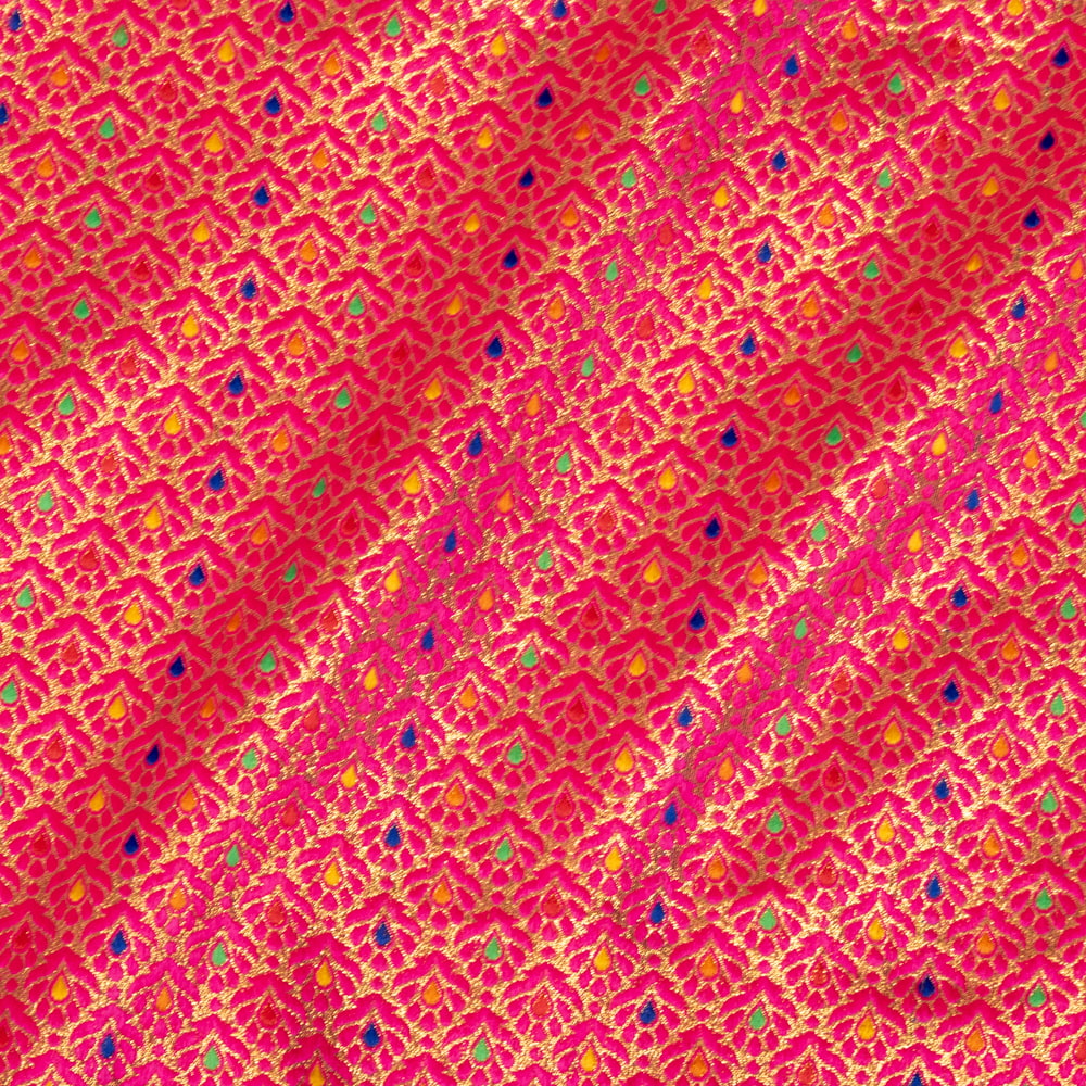 〔1m単位切り売り〕インドの伝統模様布 光沢感のあるブロケード生地 金糸〔約115cm〕ピンク系 x 5個