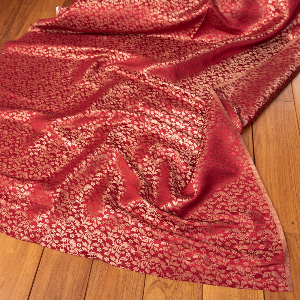 〔1m単位切り売り〕インドの伝統模様布 光沢感のあるブロケード生地に 美しい金糸の紋織 更紗〔幅約110cm〕 x 5個