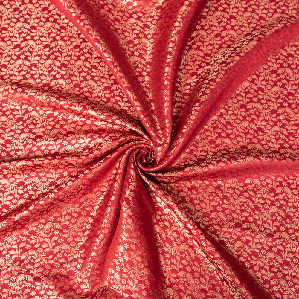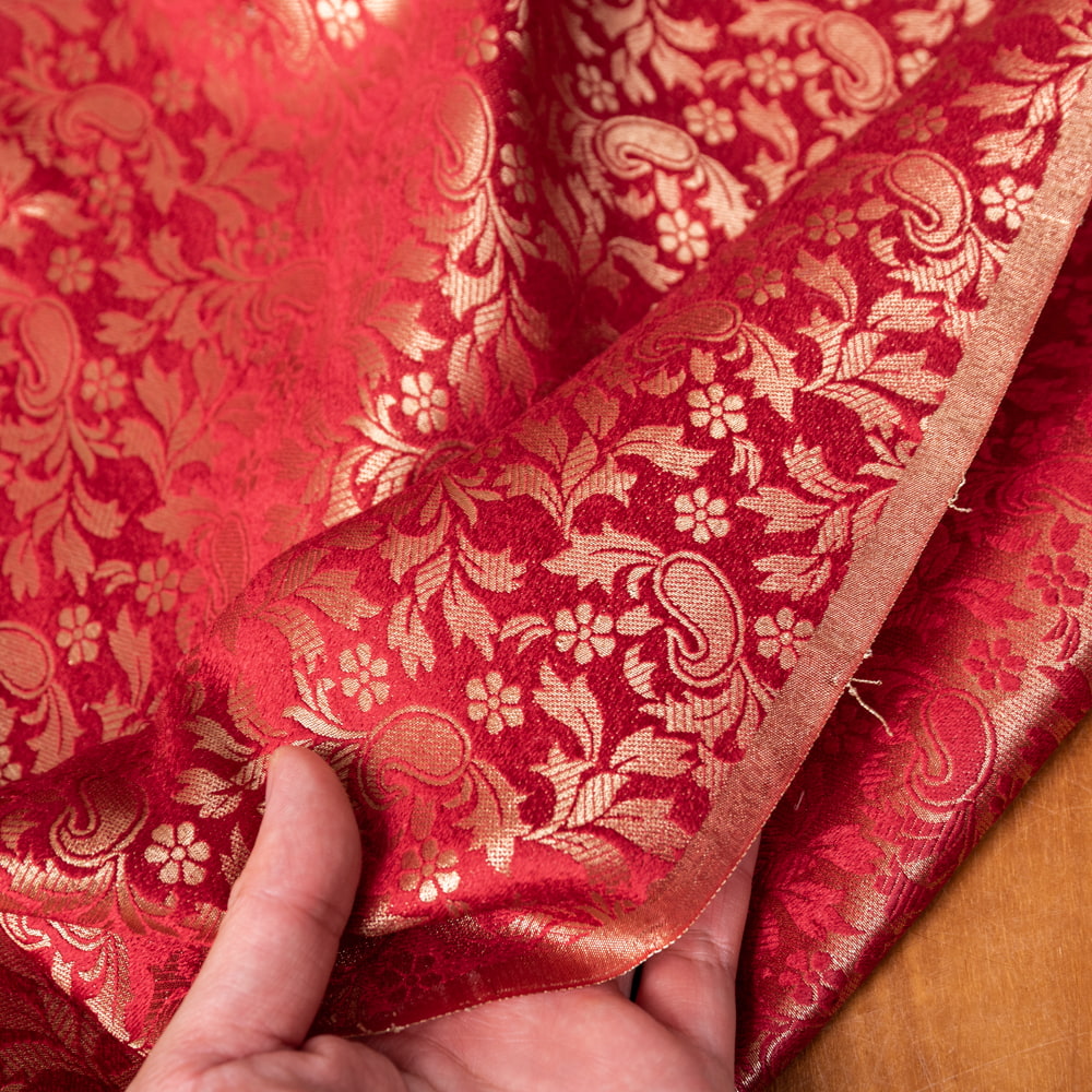 【5個セット】〔1m切単位り売り〕インドの伝統模様布 光沢感のあるブロケード生地に 美しい金糸の紋織 更紗〔幅約110cm〕