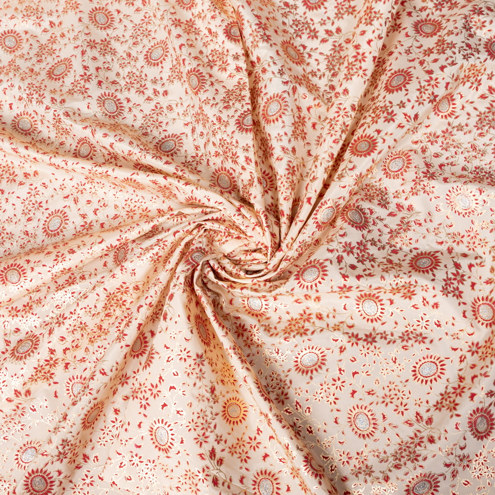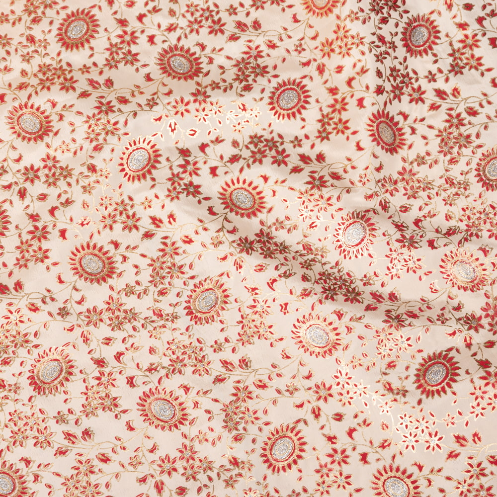 〔1m単位切り売り〕インドの伝統模様布〔約109cm〕クリーム×赤×金系 x 5個