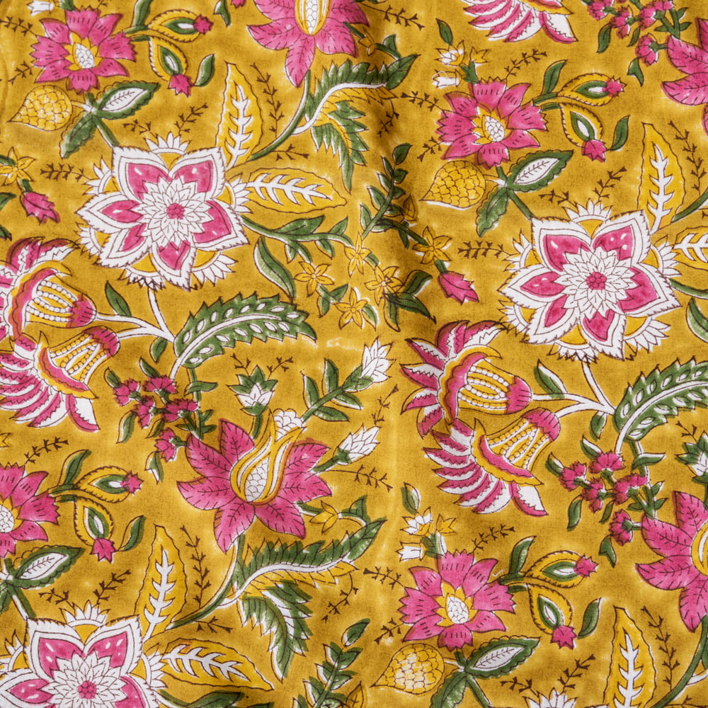 とってもかわいい生地がジャイプルからやってきました。どこかプロヴァンスなテイストも感じさせる、魅力的な色彩とデザイン。職人さんが全て手作りしており、インドらしい木版と鮮やかな色彩がきわだつ、インド綿100%のファブリックです。ナチュラルな風合いは、派手すぎずほどよく上品な雰囲気で、どんなお部屋にも馴染み、相性良くフィットしてくれそうです。