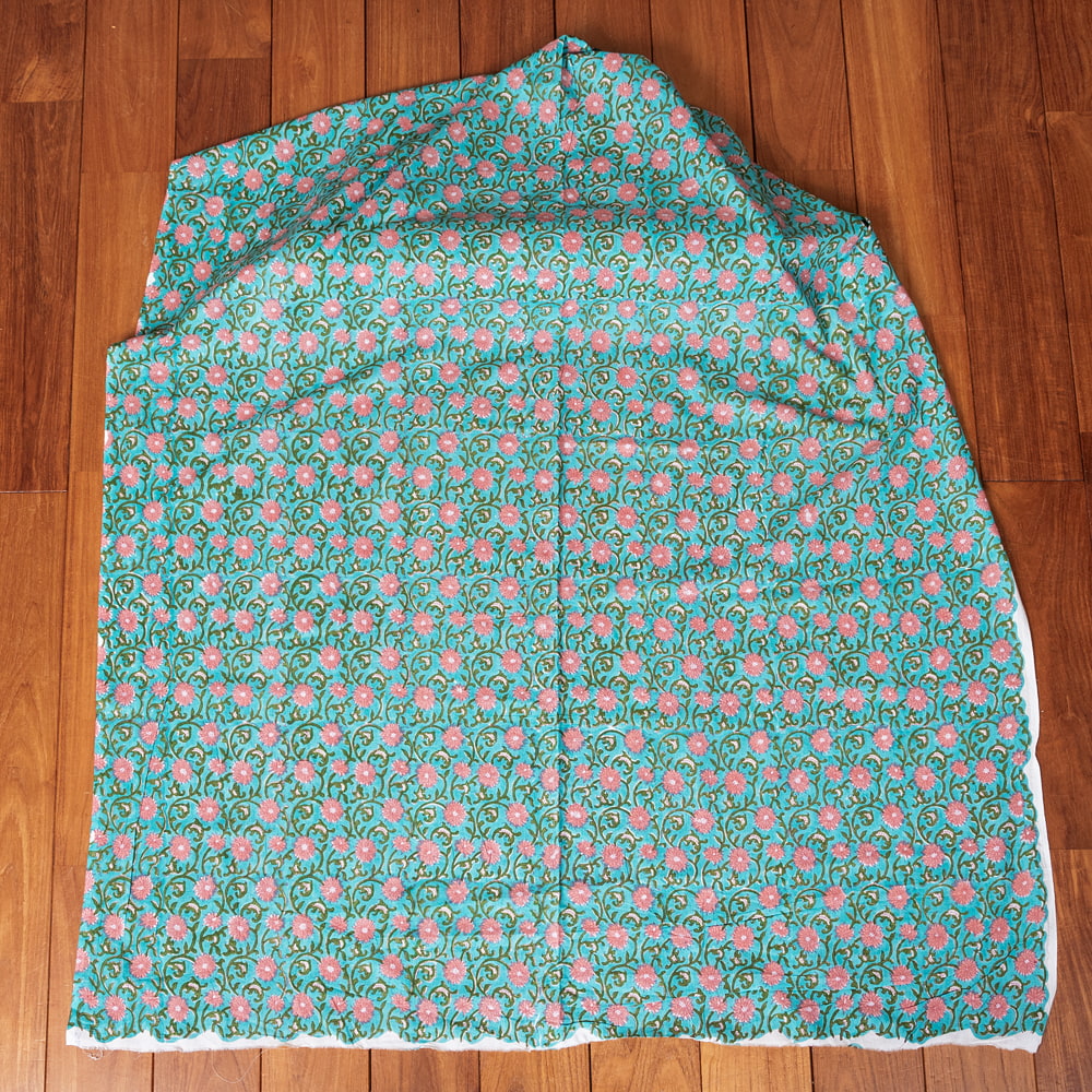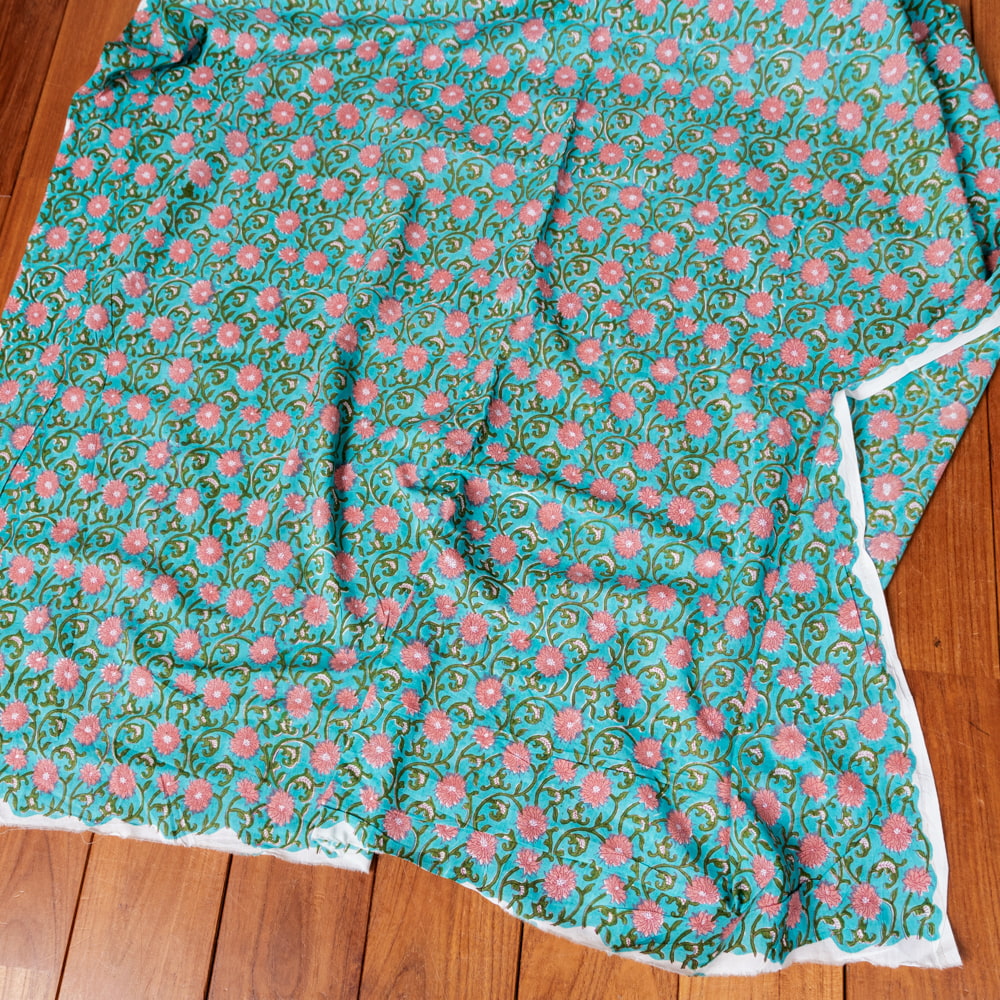 〔1m単位切り売り〕ジャイプル 職人手作り木版染め 色彩美しいボタニカルデザイン おしゃれ 生地 花柄 テーブルクロス 刺繍素材などへ〔幅約109cm〕 - グリーン系 x 5個