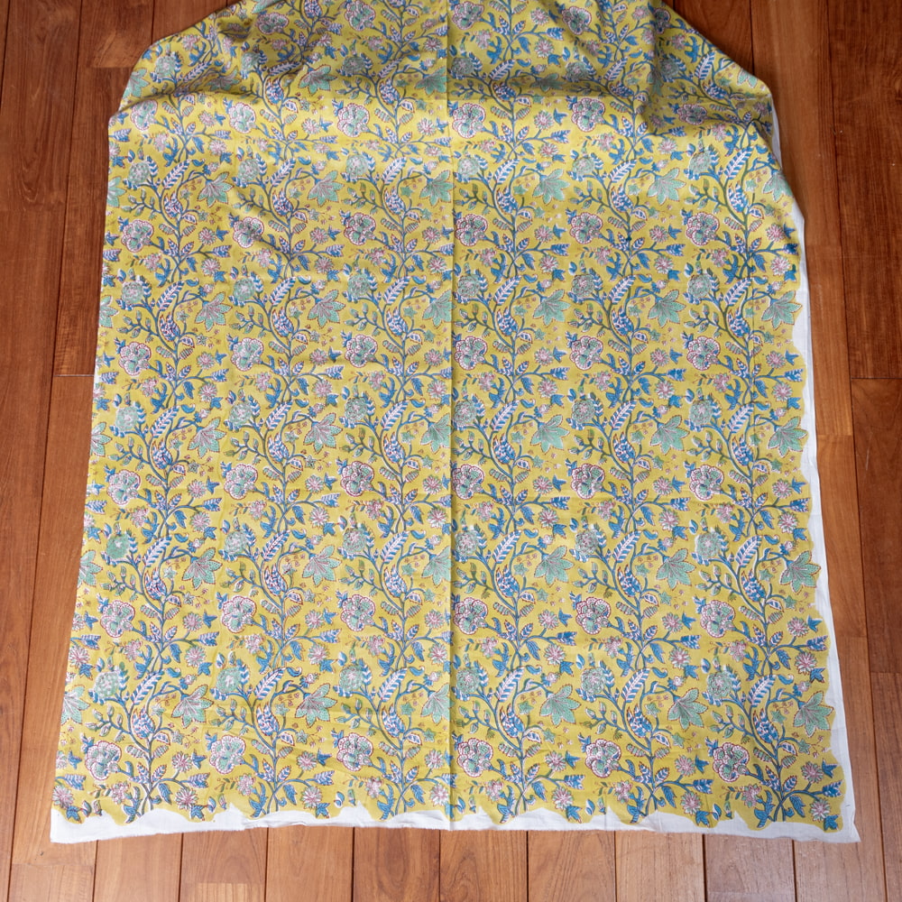 〔1m単位切り売り〕ジャイプル 職人手作り木版染め 色彩美しいボタニカルデザイン おしゃれ 生地 花柄 テーブルクロス 刺繍素材などへ〔幅約111cm〕 - ウグイス系 x 5個