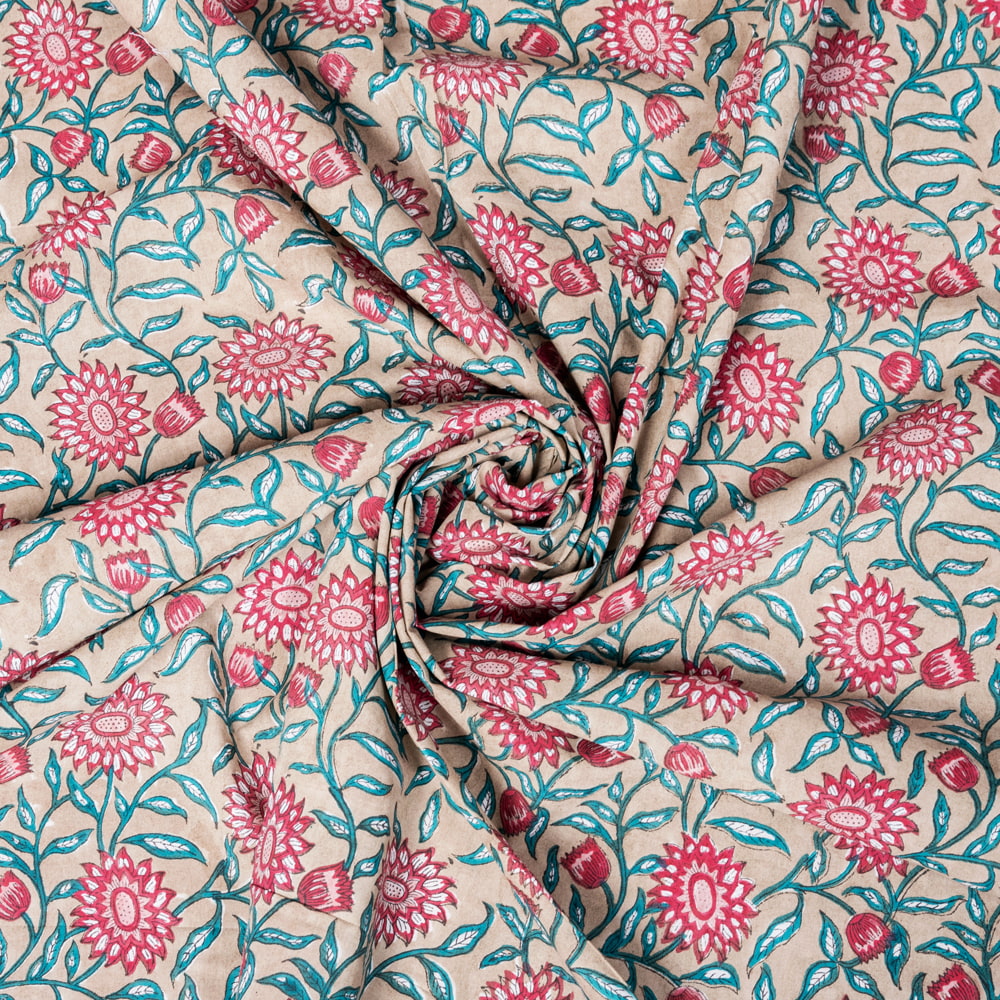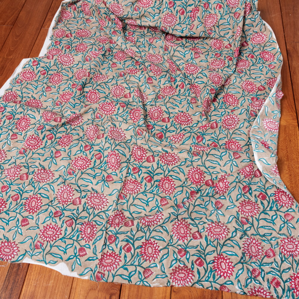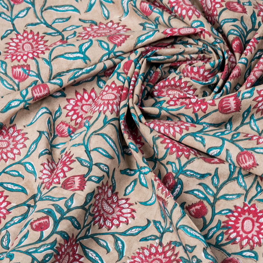 【5個セット】〔1m単位切り売り〕ジャイプル 職人手作り木版染め 色彩美しいボタニカルデザイン おしゃれ 生地 花柄 テーブルクロス 刺繍素材などへ〔幅約111cm〕 - ブラウン系の同一カテゴリ商品