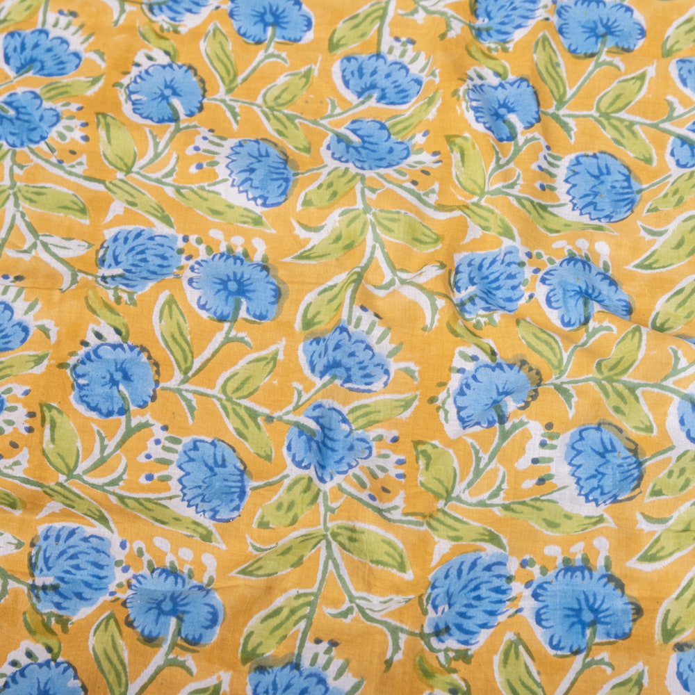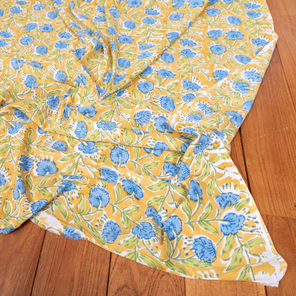【5個セット】〔1m切単位り売り〕ジャイプル 職人手作り木版染め 色彩美しいボタニカルデザイン おしゃれ 生地 花柄 テーブルクロス 刺繍素材などへ〔幅約112cm〕 - ブルー系