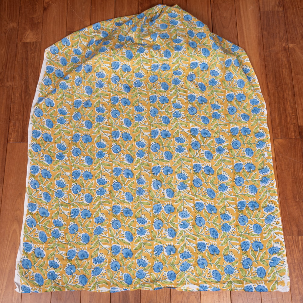 〔1m単位切り売り〕ジャイプル 職人手作り木版染め 色彩美しいボタニカルデザイン おしゃれ 生地 花柄 テーブルクロス 刺繍素材などへ〔幅約112cm〕 - ブルー系 x 5個