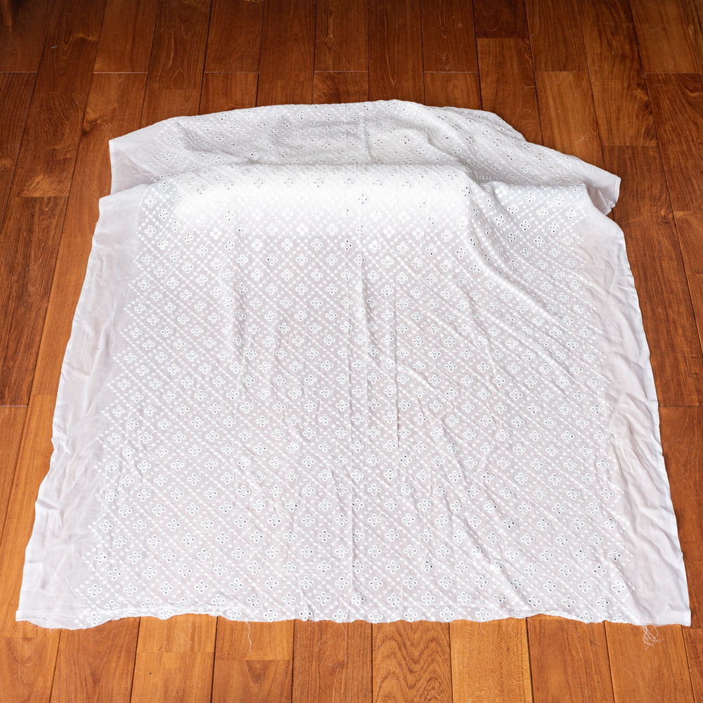 ホワイトがベースで、手をかざすと少し透けるシースルーなので、爽やかな印象のある生地です。