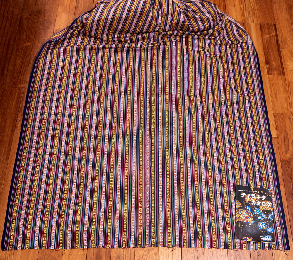 鮮やかな色合いが美しく、カバーや飾り布として様々な場所でお使いいただけるはずです。幅が大きく、手芸に幅広くお使い頂けます。色合いが綺麗ですので、切り取って形を整えるだけでランチョンマットが簡単にお作りいただけます。また、とても丈夫な生地ですので、少し手を加ええれば、世界で一つだけの自作カバン等も作れますよ!