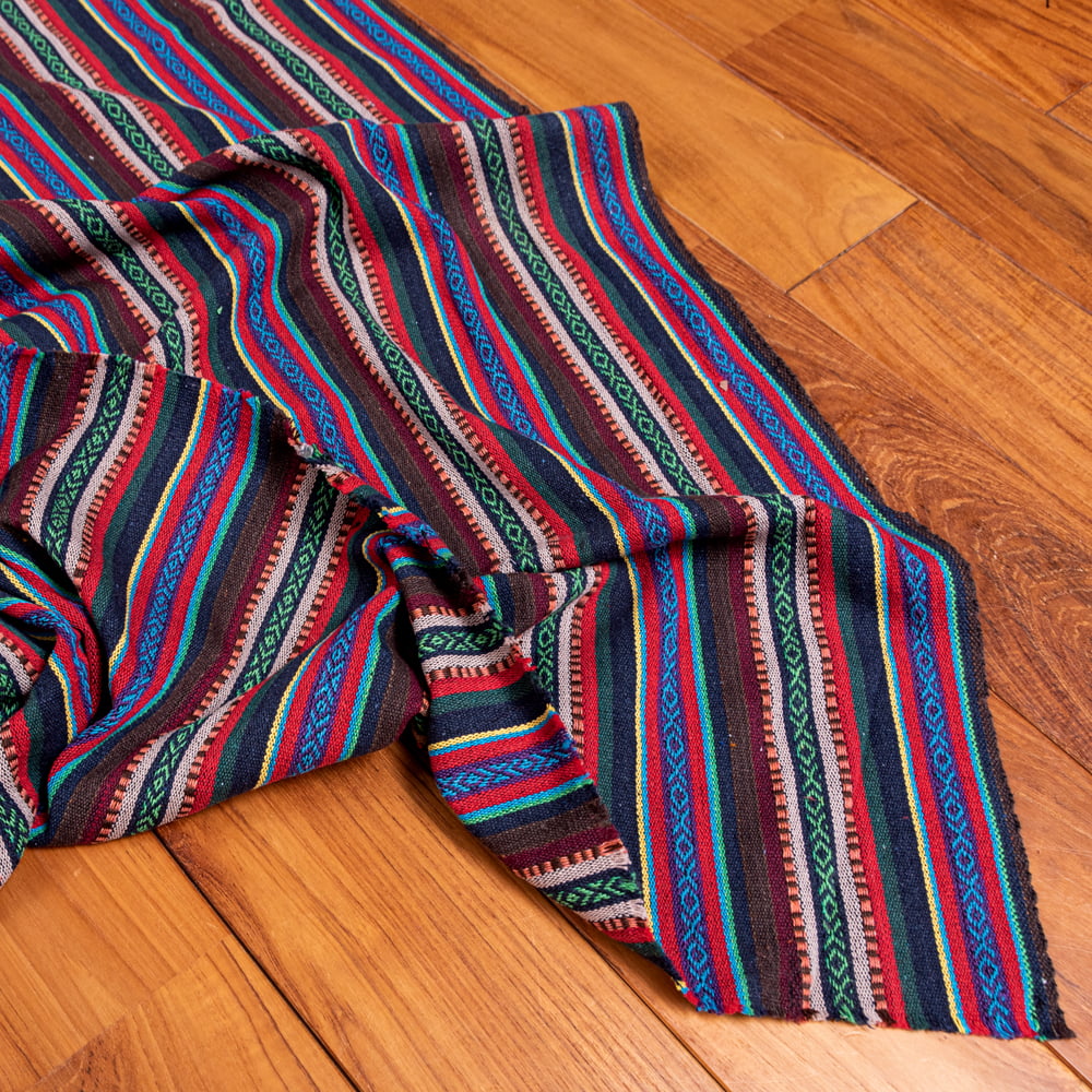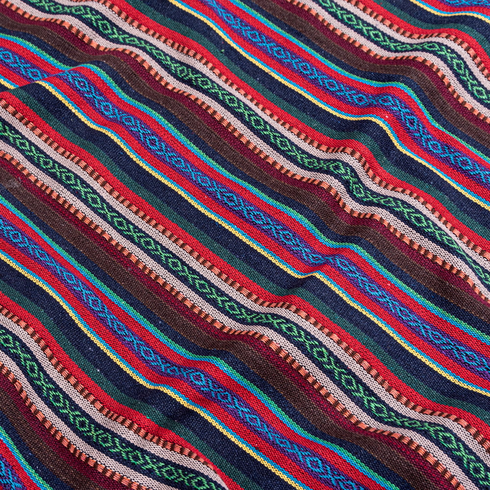 太めのコットン糸がざっくりと心地いい、ネパールのコットン布生地になります。丁寧にきっちりと編まれた、色鮮やかな布地が魅力の一品です。鮮やかな色合いが美しく、カバーや飾り布として様々な場所でお使いいただけるはずです。幅が大きく、手芸に幅広くお使い頂けます。