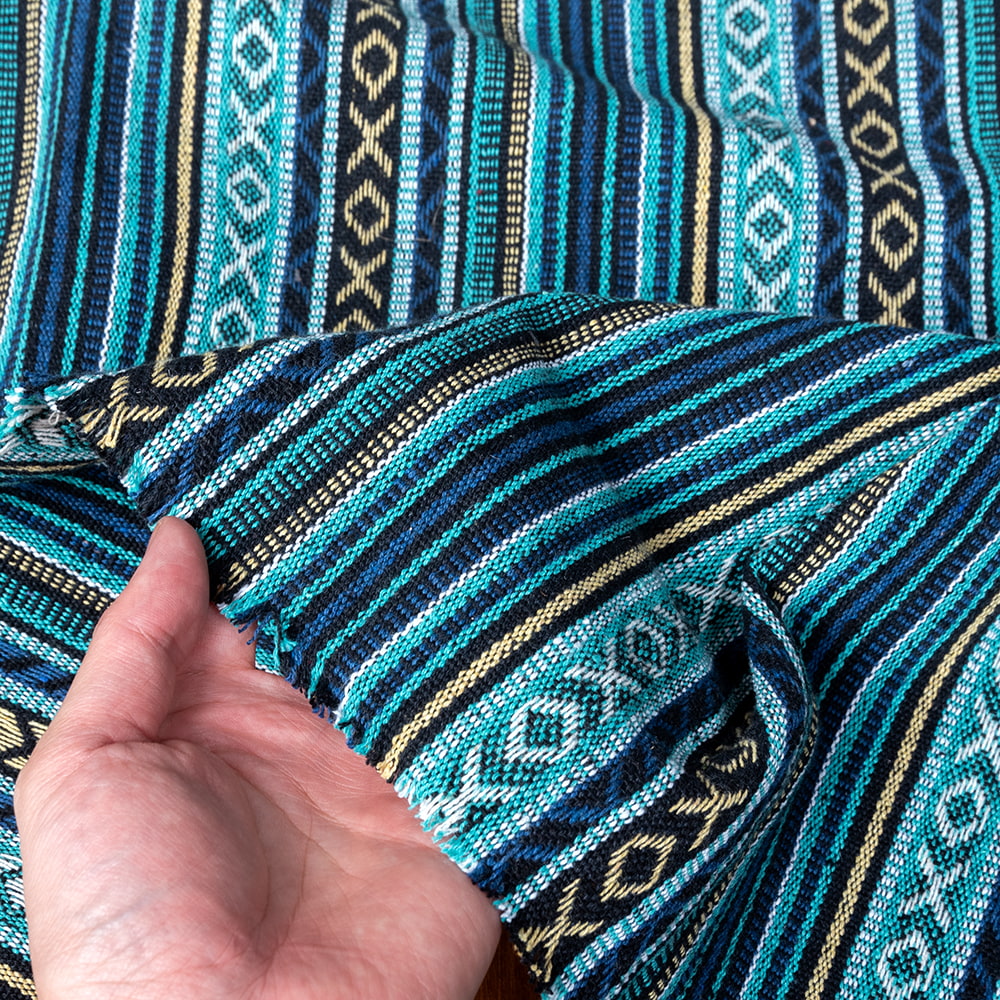 太めのコットン糸がざっくりと心地いい、ネパールのコットン布生地になります。丁寧にきっちりと編まれた、色鮮やかな布地が魅力の一品です。鮮やかな色合いが美しく、カバーや飾り布として様々な場所でお使いいただけるはずです。幅が大きく、手芸に幅広くお使い頂けます。