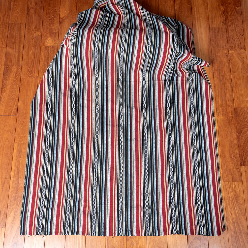 太めのコットン糸がざっくりと心地いい、ネパールのコットン布生地になります。丁寧にきっちりと編まれた、色鮮やかな布地が魅力の一品です。鮮やかな色合いが美しく、カバーや飾り布として様々な場所でお使いいただけるはずです。幅が大きく、手芸に幅広くお使い頂けます。