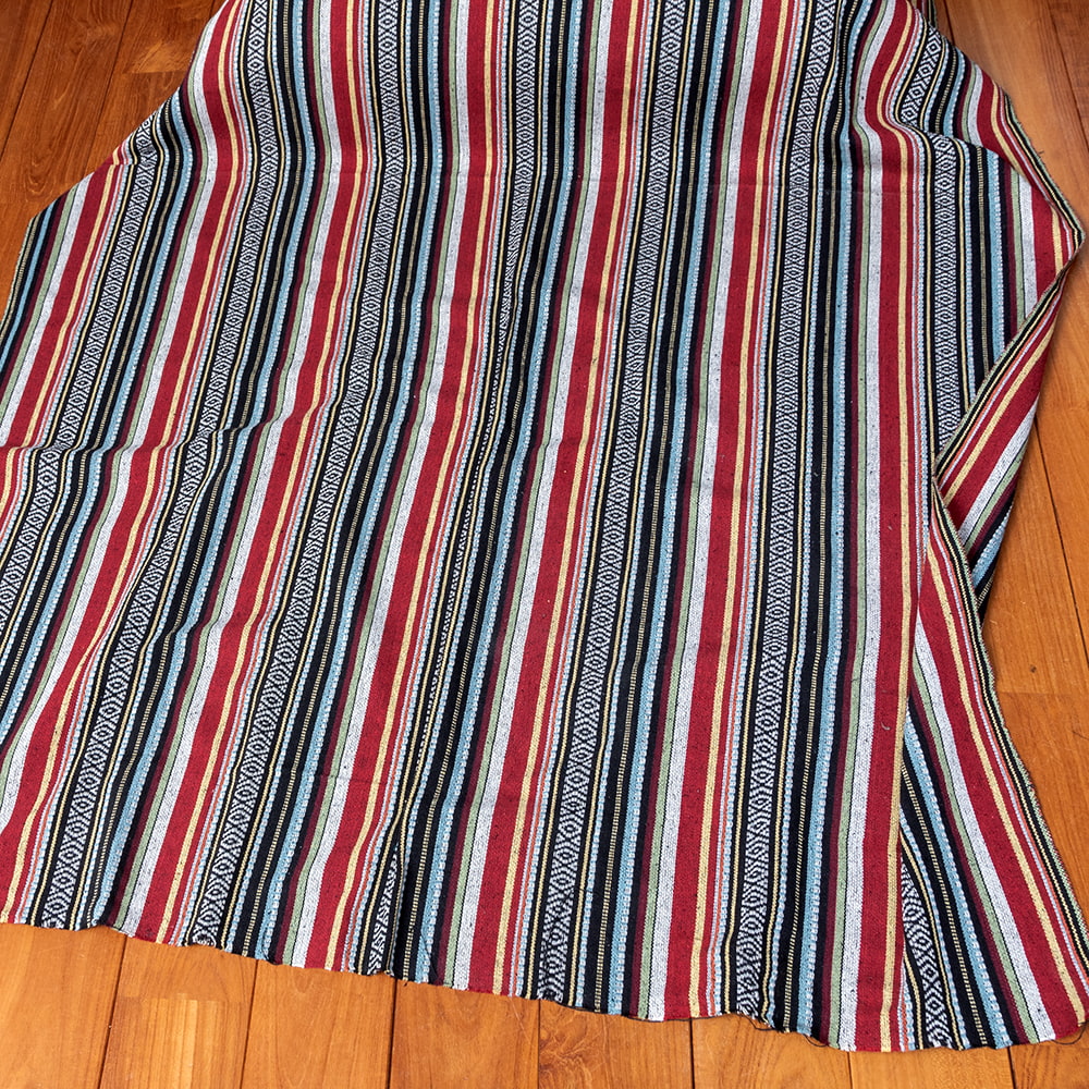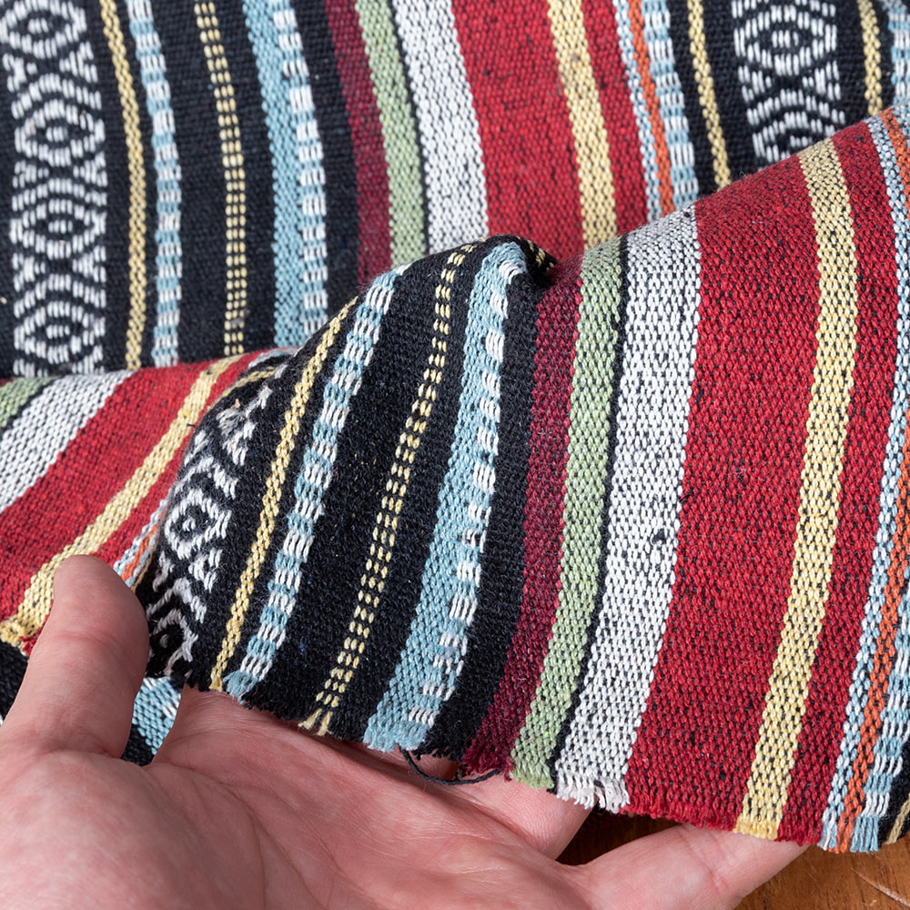 太めのコットン糸がざっくりと心地いい、ネパールのコットン布生地になります。丁寧にきっちりと編まれた、色鮮やかな布地が魅力の一品です。鮮やかな色合いが美しく、カバーや飾り布として様々な場所でお使いいただけるはずです。幅が大きく、手芸に幅広くお使い頂けます。
