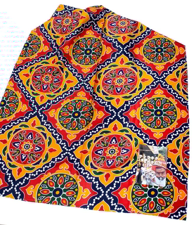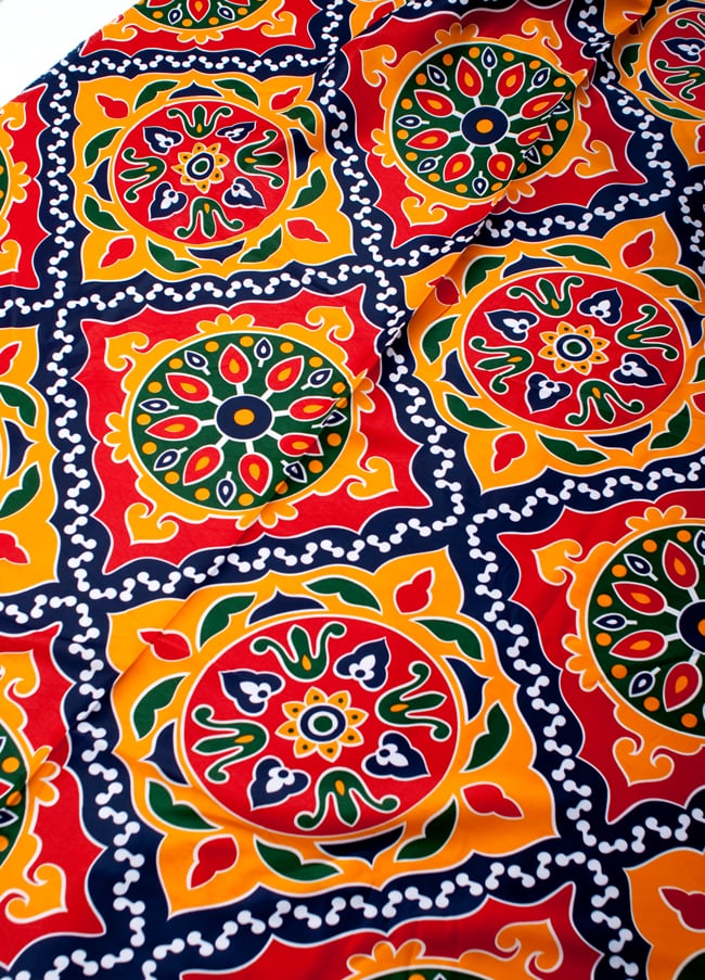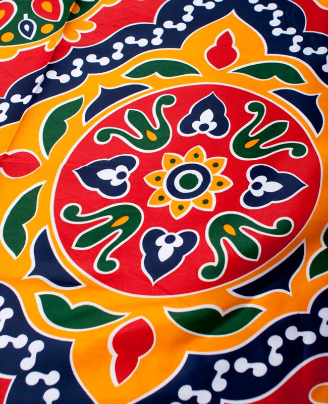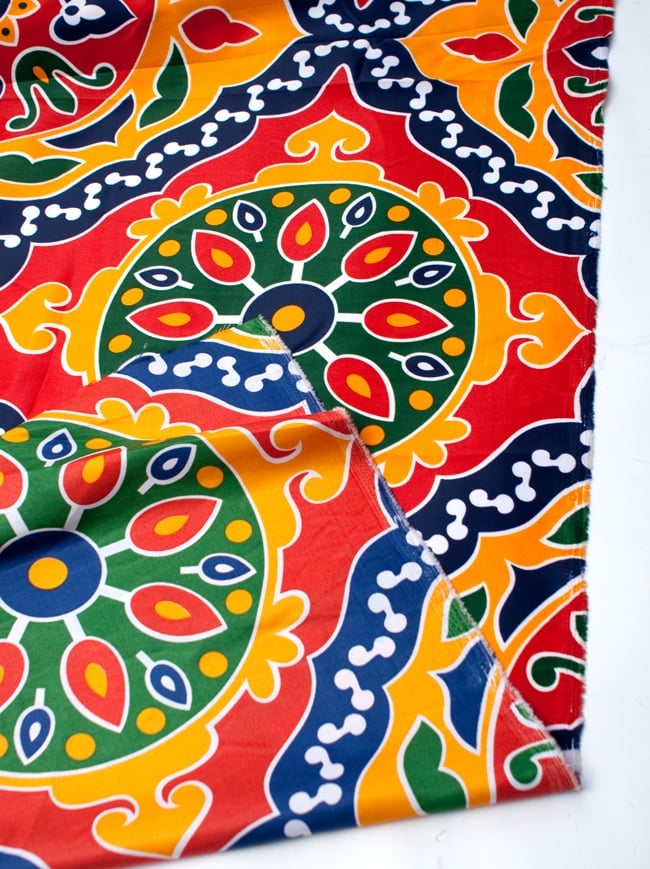 インドの伝統模様がドカンとプリントされた、色鮮やかな布地です。飾り布としての存在感は抜群です。■化繊で丈夫!!