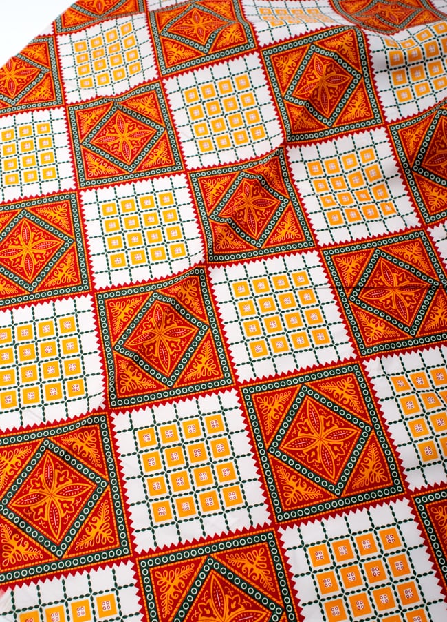 インドの伝統模様がドカンとプリントされた、色鮮やかな布地です。飾り布としての存在感は抜群です。■化繊で丈夫!!
