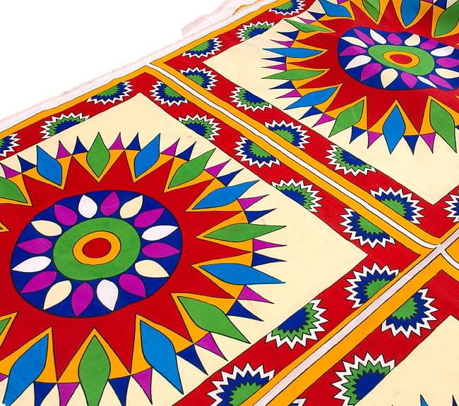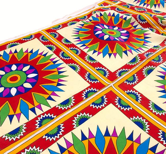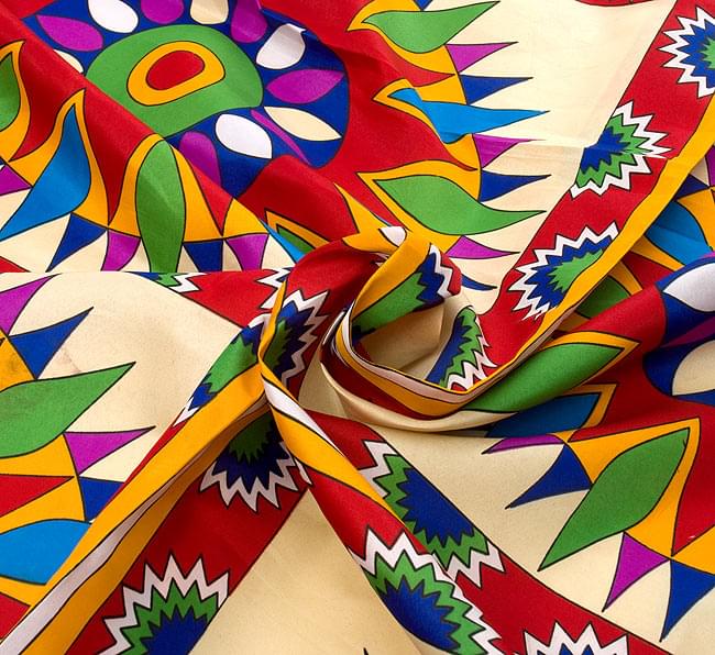 インドの伝統模様がドカンとプリントされた、色鮮やかな布地です。飾り布としての存在感は抜群です。■化繊で丈夫!!