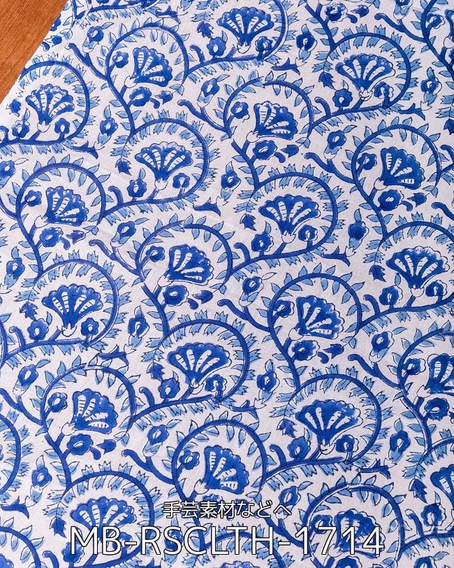 【3個セット】〔1m単位切り売り〕ジャイプル 職人手作り木版染め 色彩美しいボタニカルデザイン〔幅約106cm〕〔ブルー系 更紗柄〕 おしゃれ 生地 テーブルクロス 手芸素材などへ