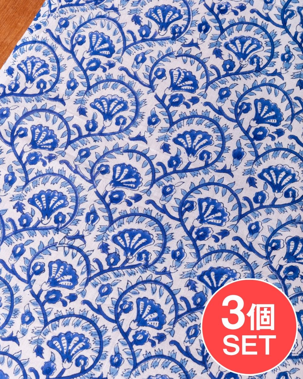 【3個セット】〔1m単位切り売り〕ジャイプル 職人手作り木版染め 色彩美しいボタニカルデザイン〔幅約106cm〕〔ブルー系 更紗柄〕 おしゃれ 生地 テーブルクロス 手芸素材などへ