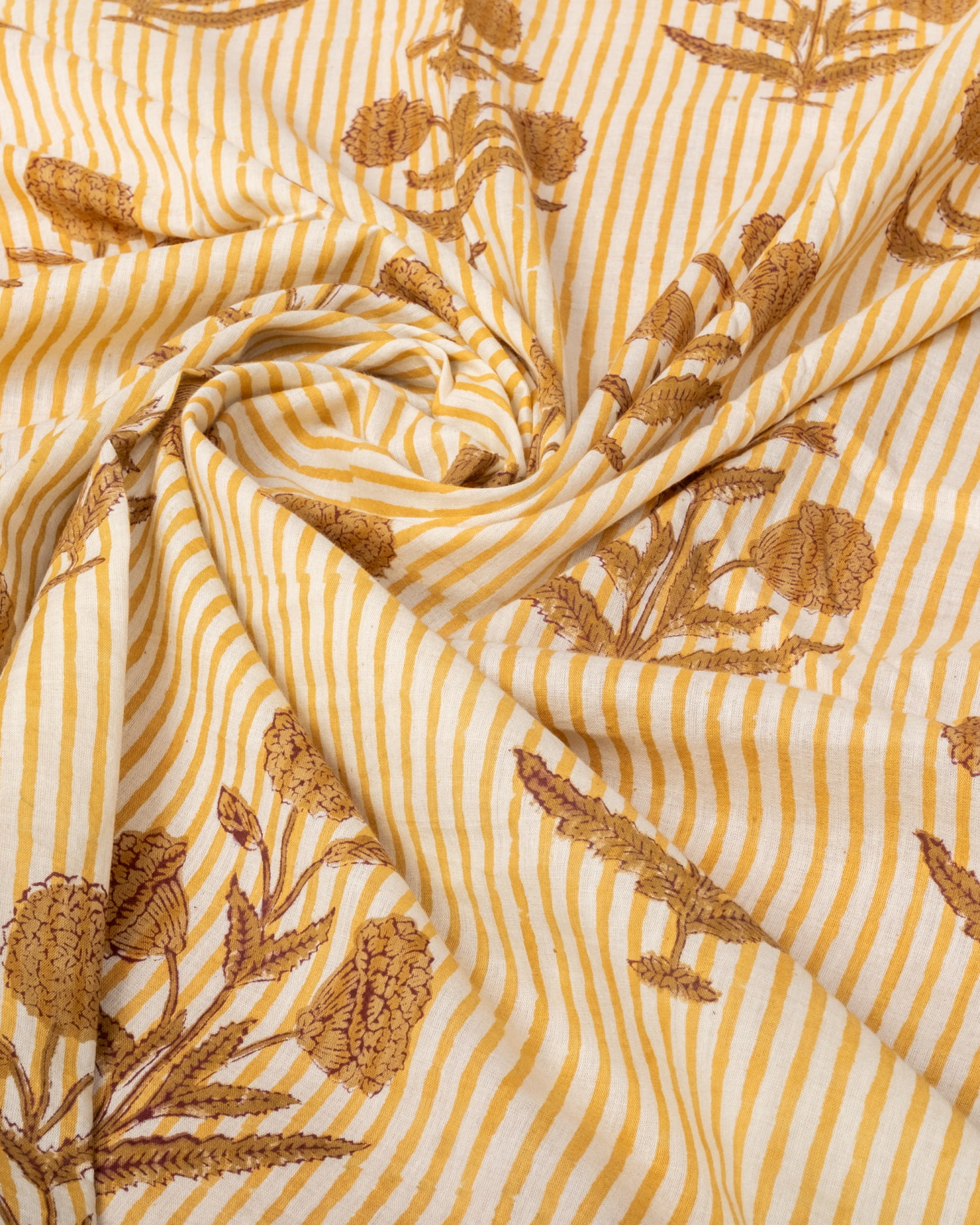 〔1m単位切り売り〕ジャイプル 職人手作り木版染め 色彩美しいボタニカルデザイン〔幅約112cm〕〔ベージュ×ブラウン系 花柄〕 おしゃれ 生地 テーブルクロス 手芸素材などへ x 3個