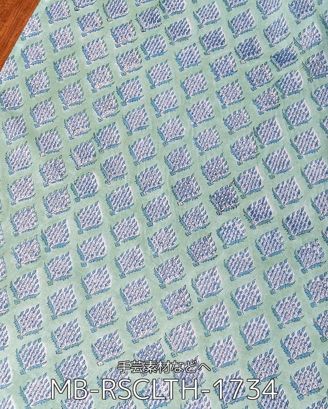 【3個セット】〔1m単位切り売り〕ジャイプル 職人手作り木版染め 色彩美しいボタニカルデザイン〔幅約106cm〕〔ミントグリーン系 小花柄〕 おしゃれ 生地 テーブルクロス 手芸素材などへの同一カテゴリ商品