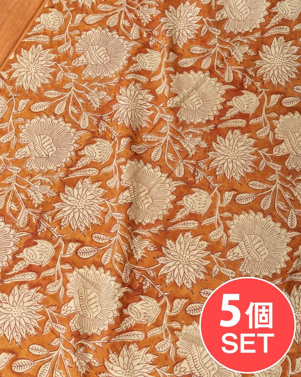 【5個セット】〔1m単位切り売り〕ジャイプル 職人手作り木版染め 色彩美しいボタニカルデザイン〔幅約110cm〕〔ブラウン系 更紗柄〕 おしゃれ 生地 テーブルクロス 手芸素材などへ