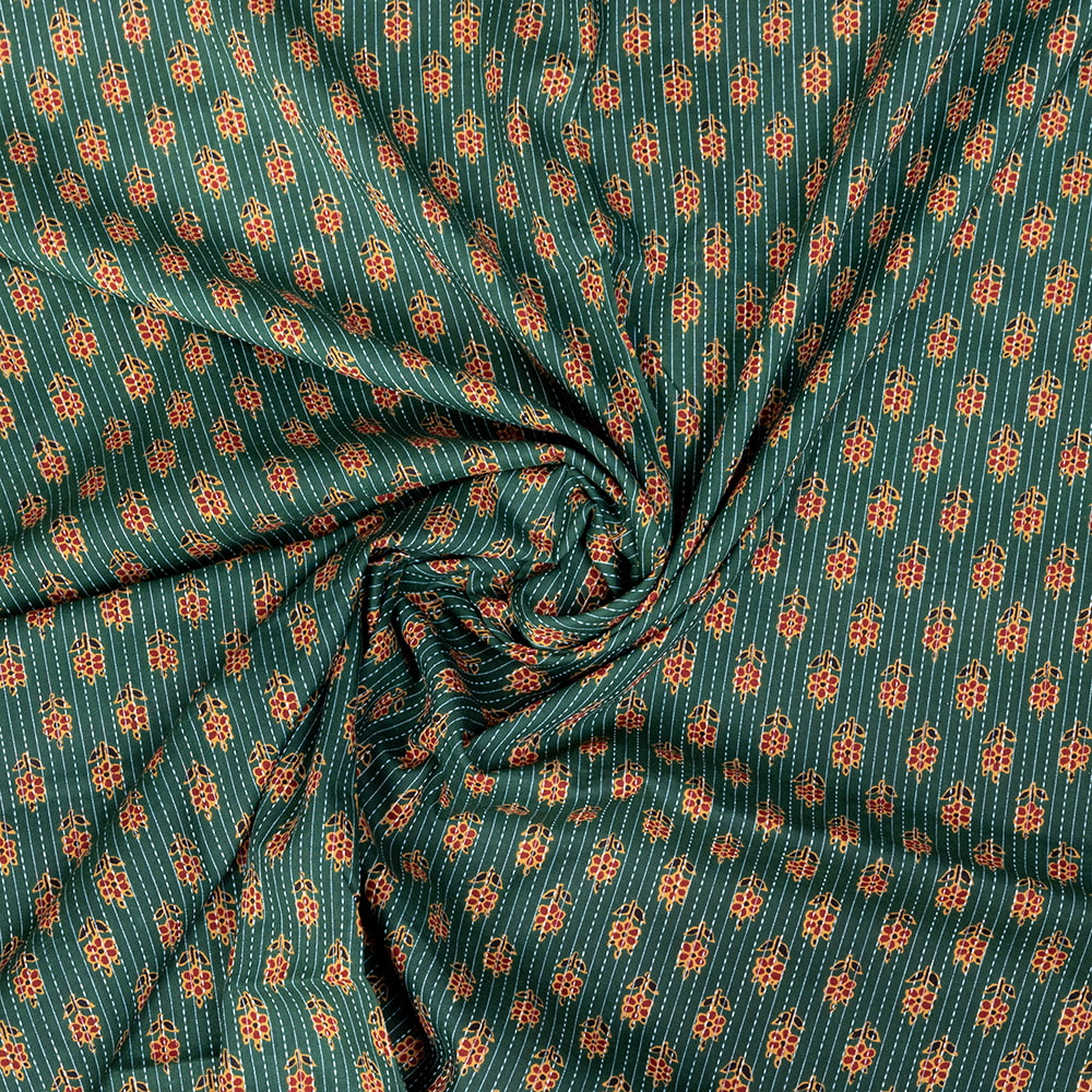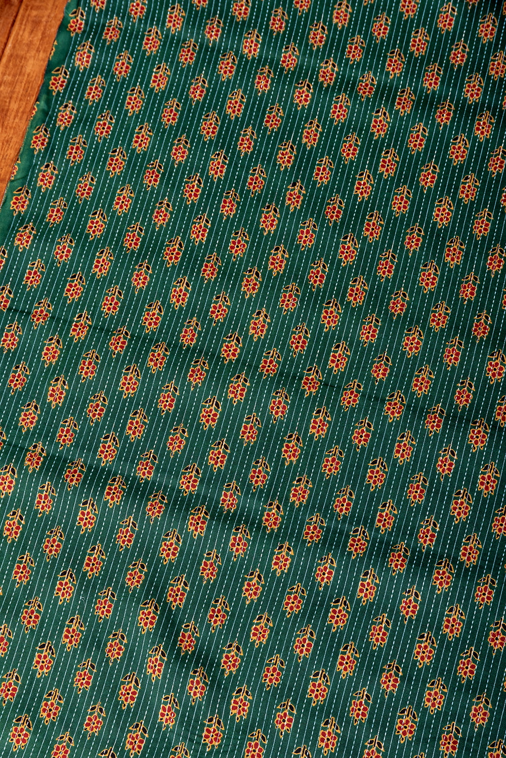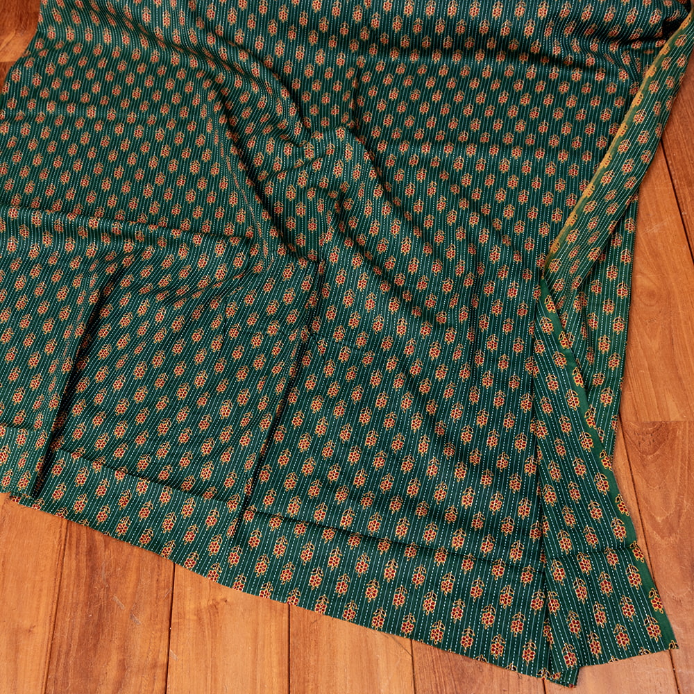 〔1m単位切り売り〕カンタ刺繍がかわいい ボタニカルデザインの布 フォレスト系〔幅約108cm〕 x 3個