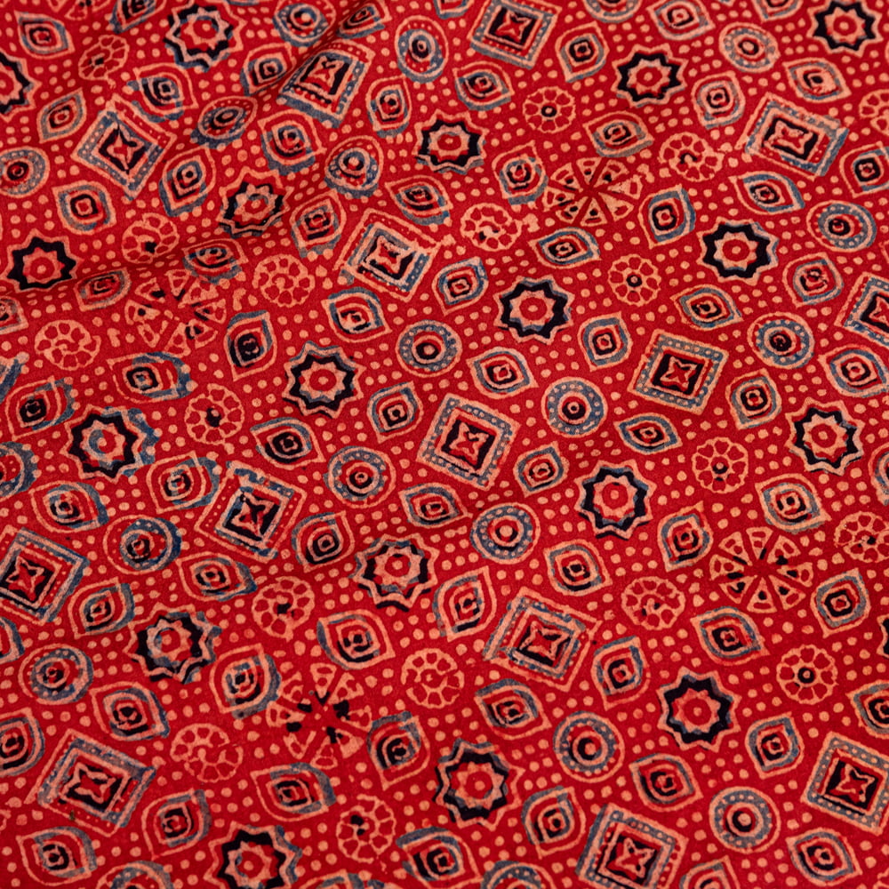 〔約3.8m 長尺布】伝統息づくインドから 昔ながらの木版染めアジュラックデザインの伝統模様布〔横幅:約110cm〕 x 3個