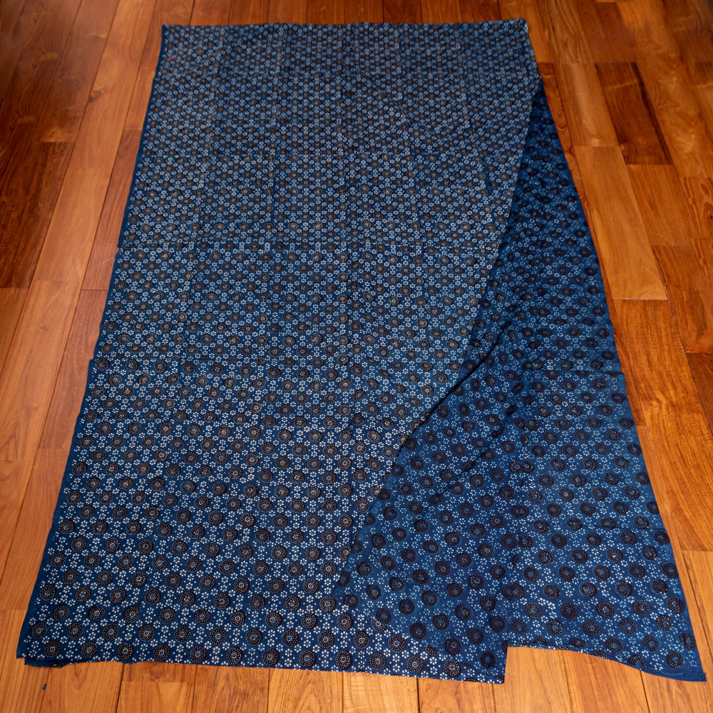 〔約3.8m 長尺布】伝統息づくインドから 昔ながらの木版藍染めアジュラックデザインの伝統模様布〔横幅:約113cm〕 x 5個