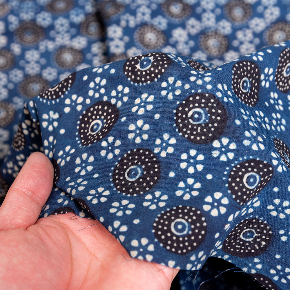 布には、ハンドメイドのウッドブロックプリントにしか出せない、独特のムラがありとても雰囲気があります。