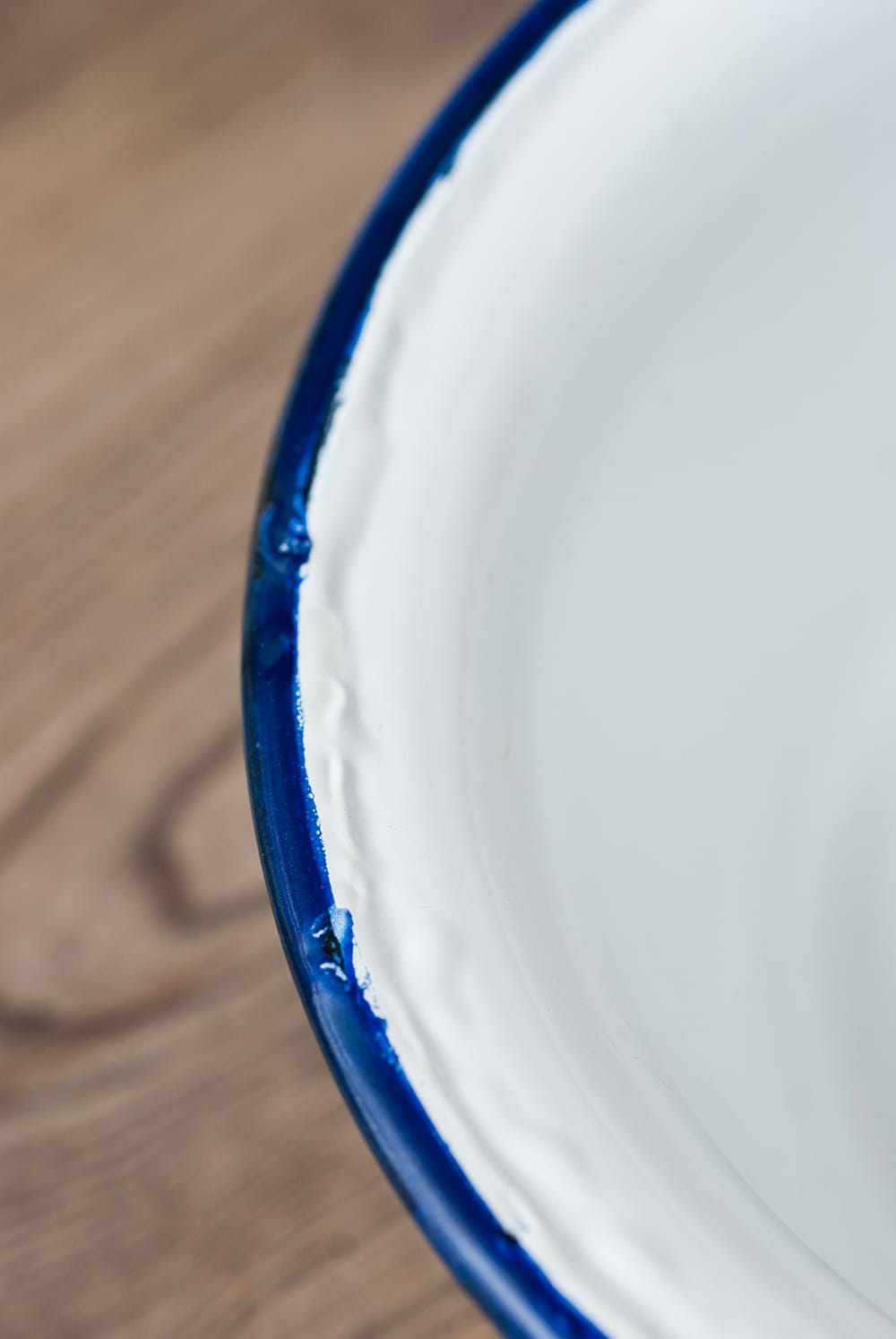 大都市ムンバイの雑踏のなかで見つけたホーロー皿が入荷しました。北欧を始めとしたヨーロッパ圏のイメージの強いホーローですが、インドの琺瑯はやはりインド的。塗りのムラや細かな欠けにハンドメイドの暖かみを感じる、新品なのにアンティークな仕上がりです。金属にガラス質の釉薬を高温で焼き付けているため、腐食に強くかつ軽量であるという質と美観を兼ね備えた琺瑯皿。日々の暮らしを彩るのにぴったりの一枚です。